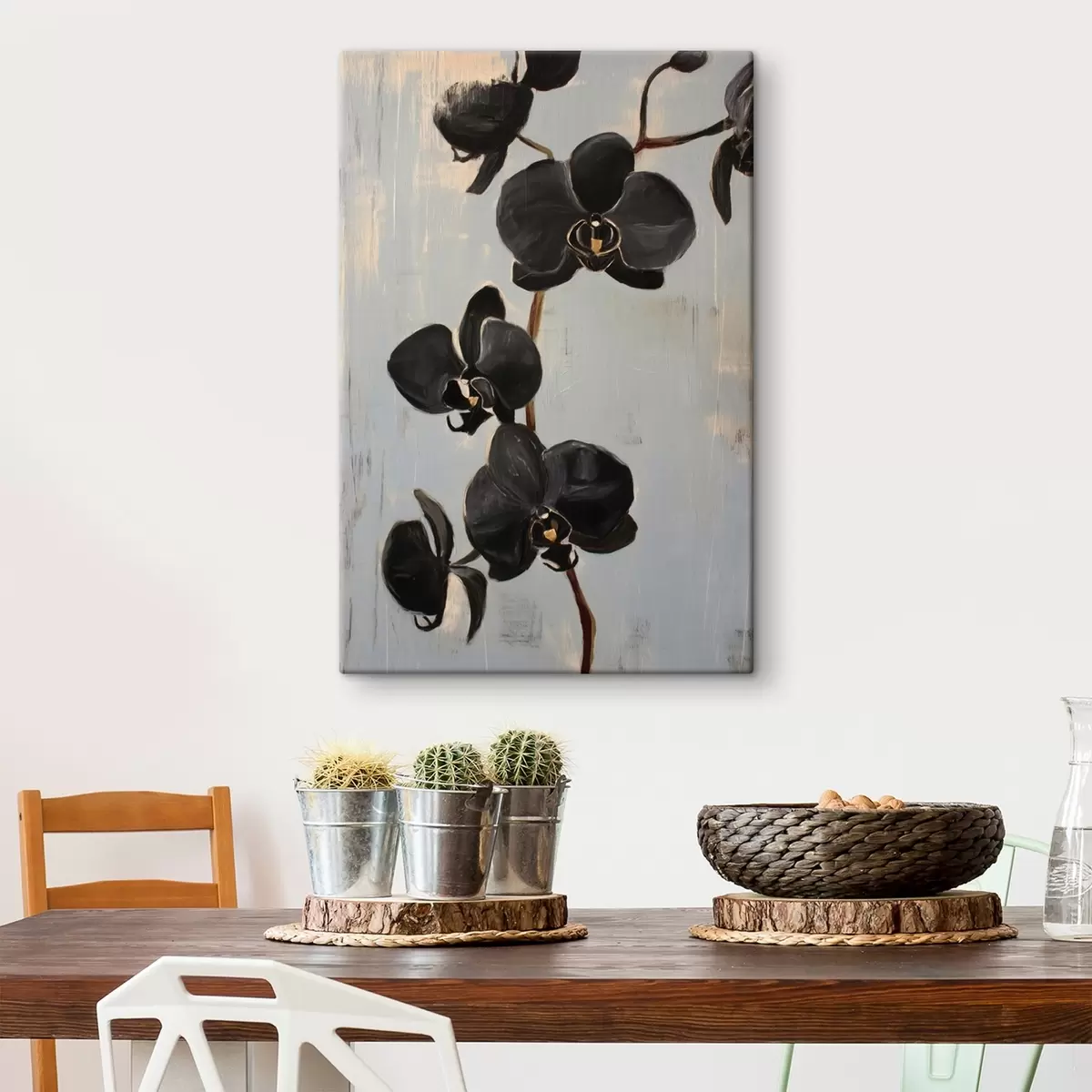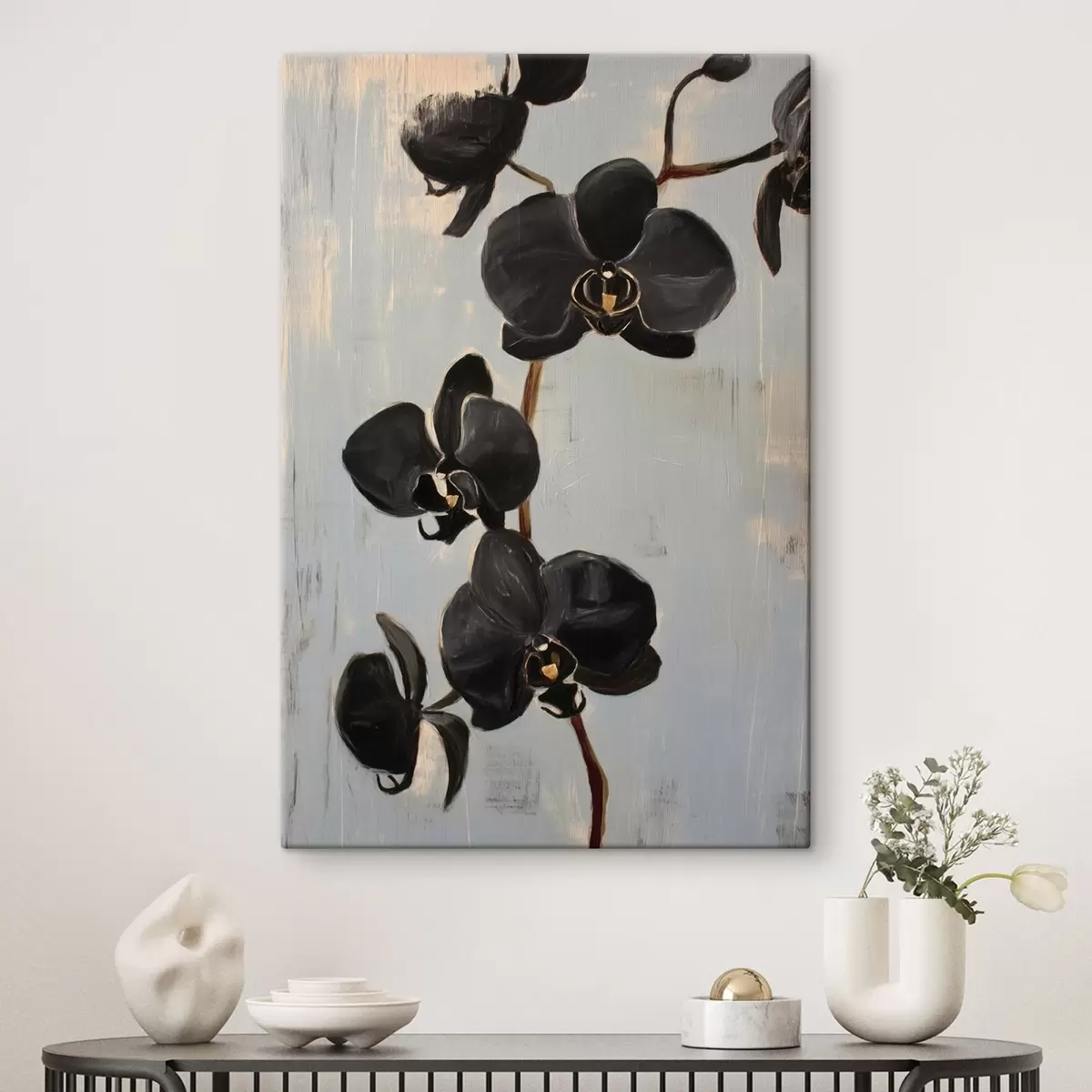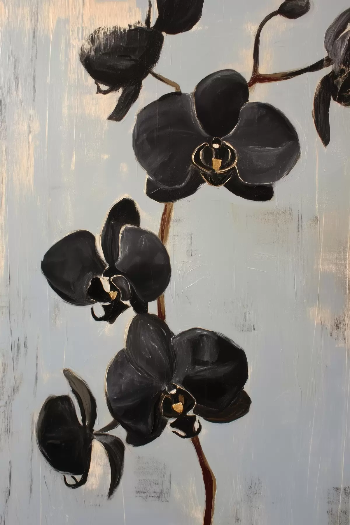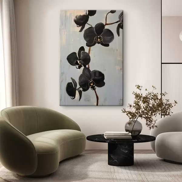 Obraz Dekorativní orchideje: černé květy na šedém pozadí Č. s45547
