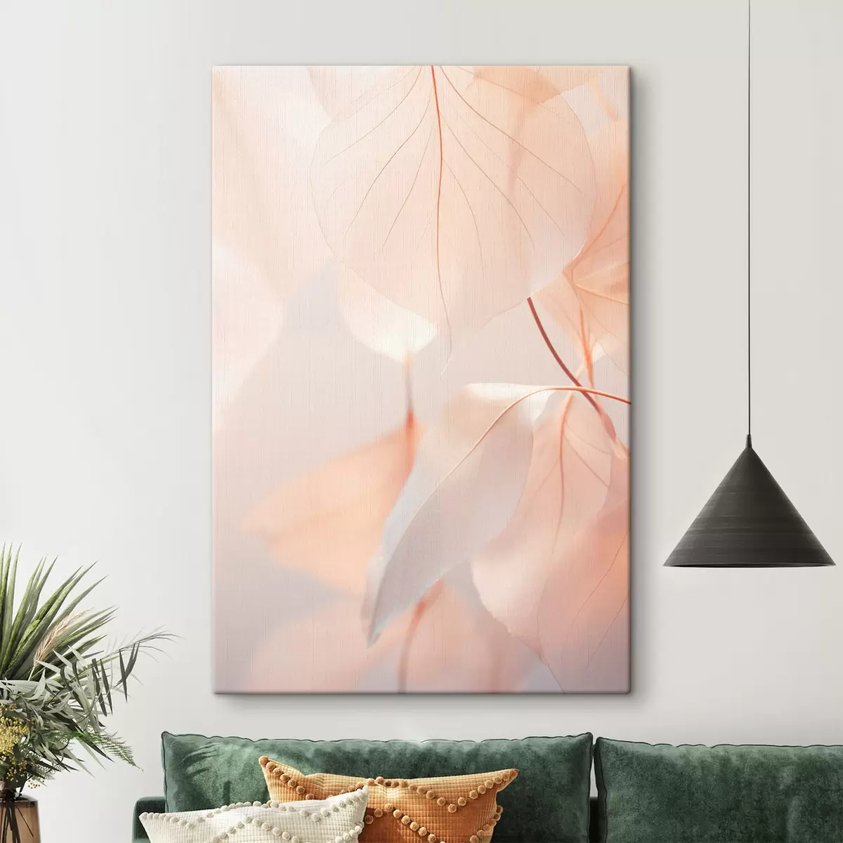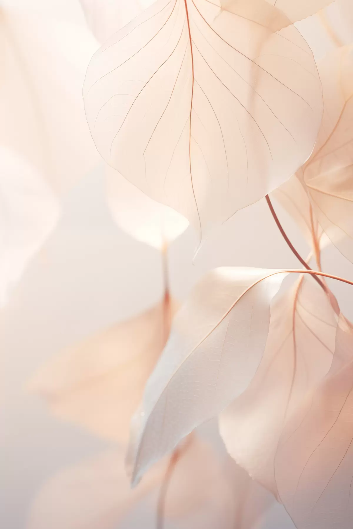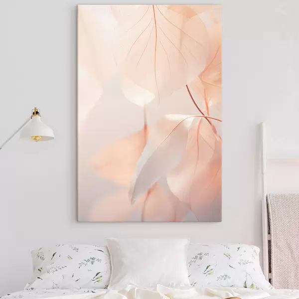 Obraz Detailní záběr průsvitných listů s jemnými žilkami, jemná broskvová a bílá paleta barev, rozmazané pozadí Č. s45556
