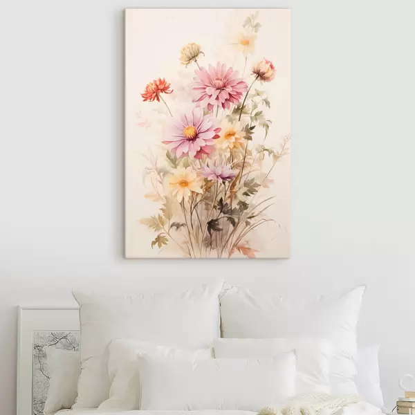 Obraz Kytice barevných květin, jemný akvarelový styl, na světlém pozadí, botanická ilustrace Č. s45560