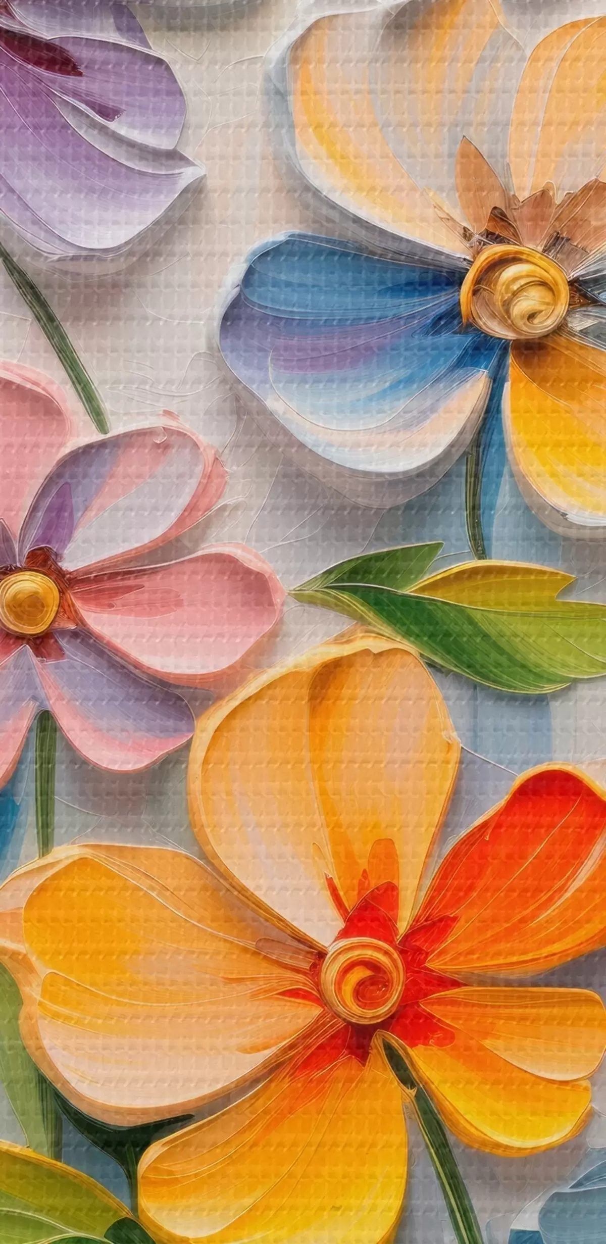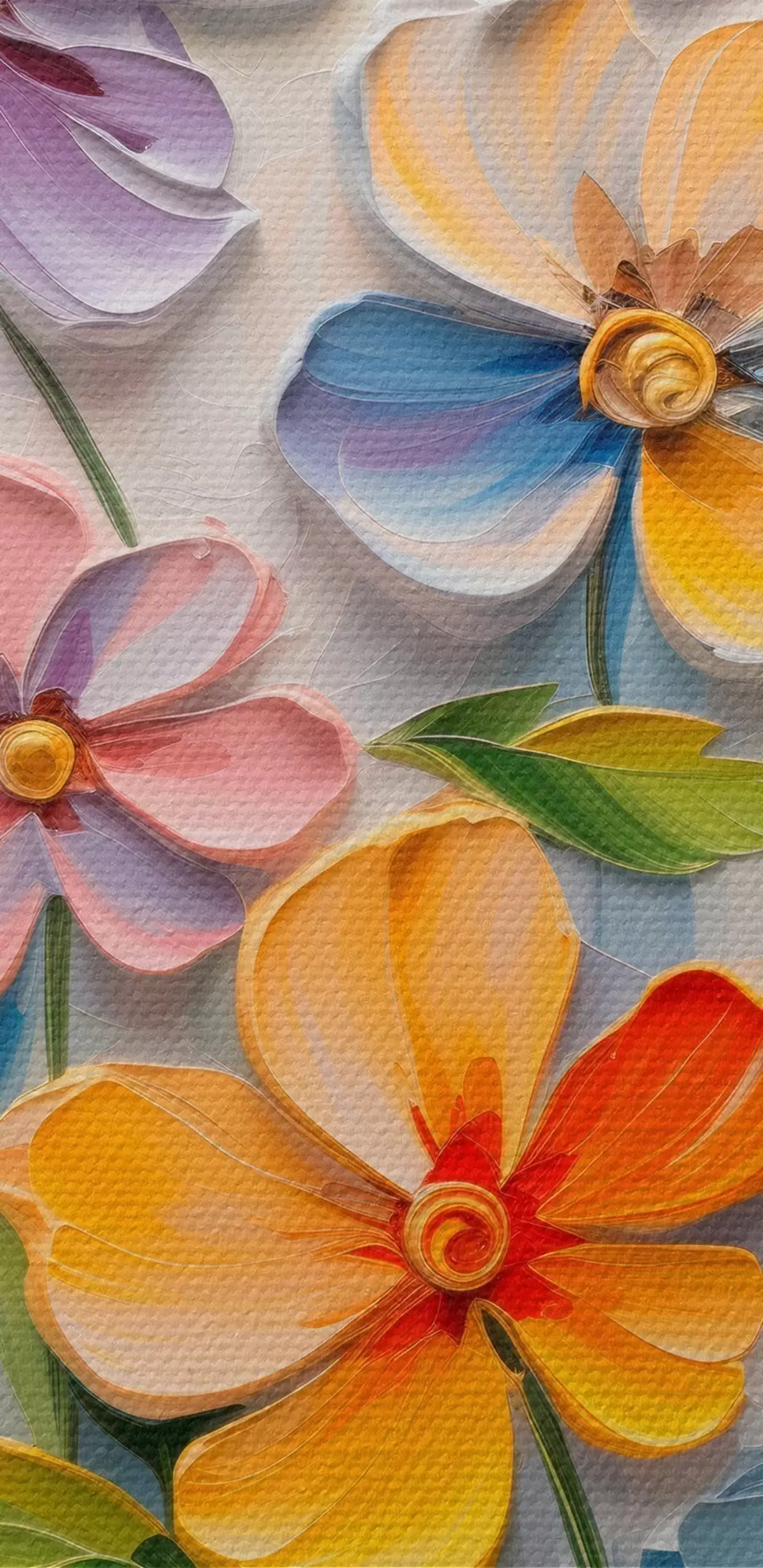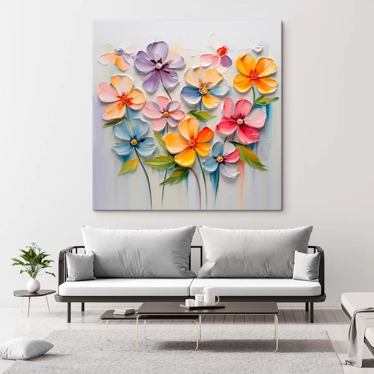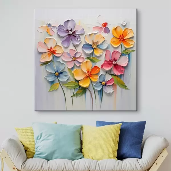 Obraz Květinové zátiší: pestrobarevné květiny technikou impasto Č. s45598