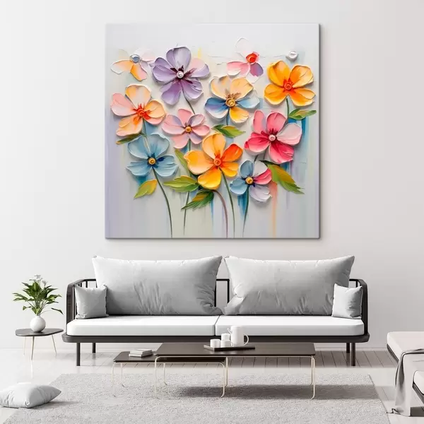 Obraz Květinové zátiší: pestrobarevné květiny technikou impasto Č. s45598