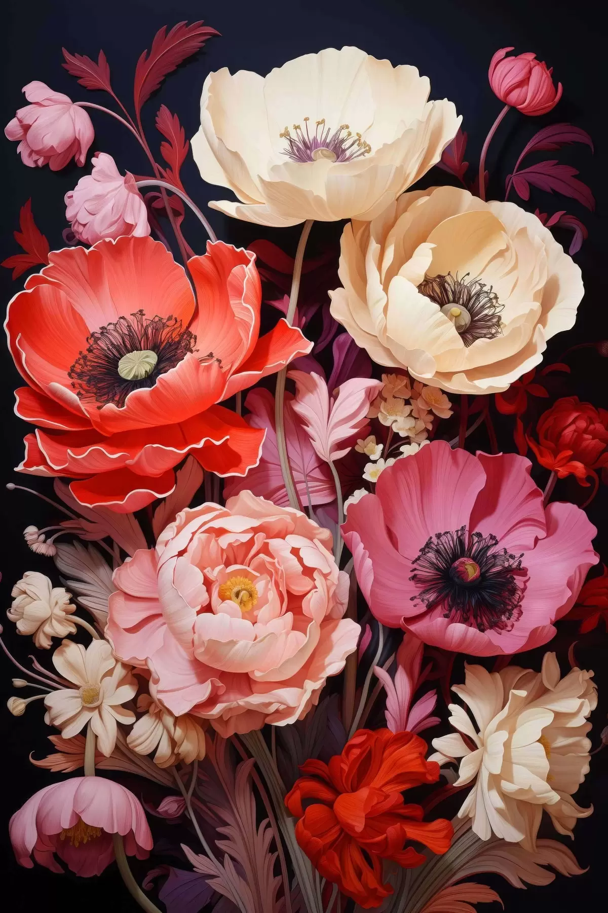 Obraz Kytice máků v růžových a červených odstínech Č. s45600