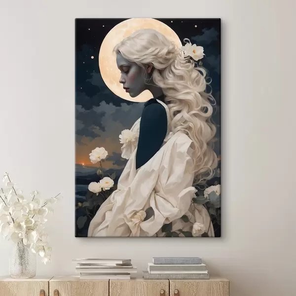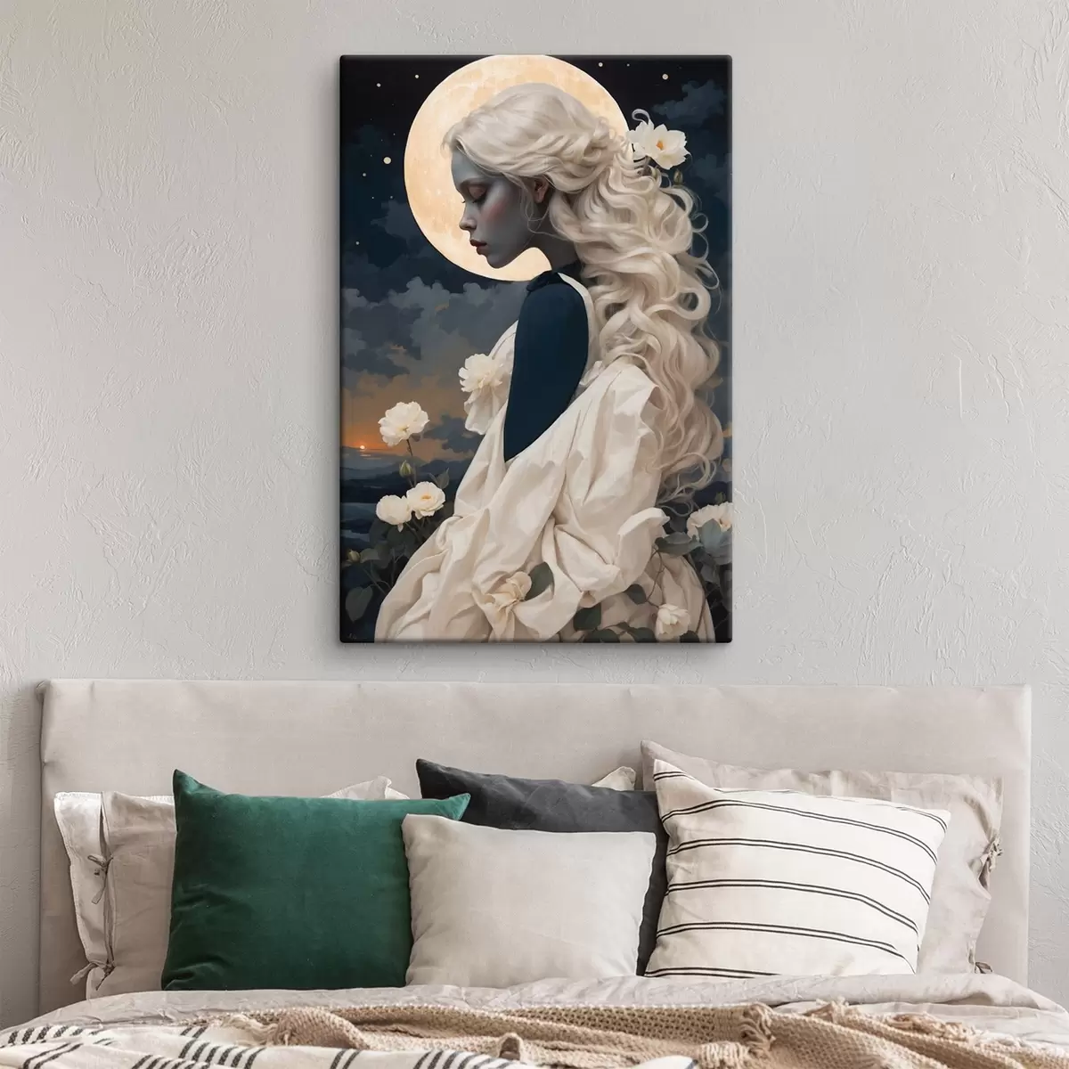 Obraz Žena s bílými vlasy pod měsícem Č. s45622