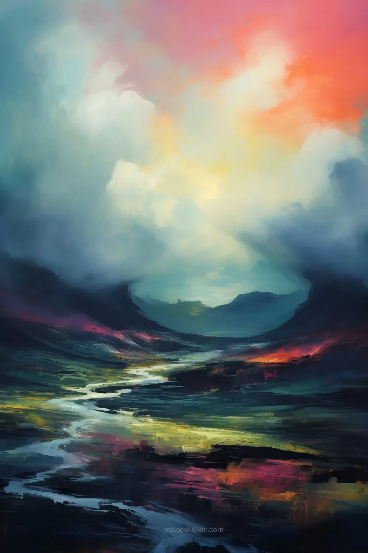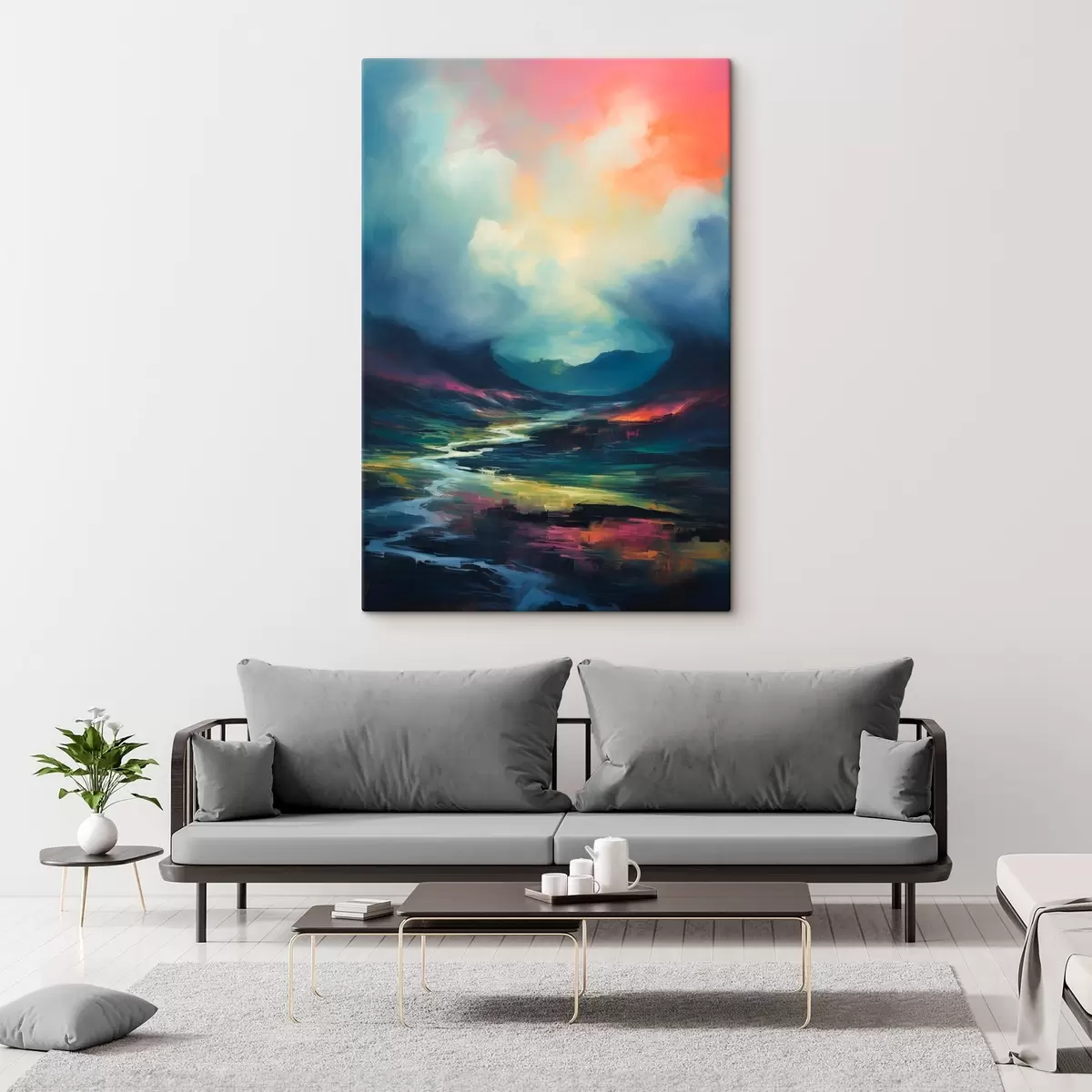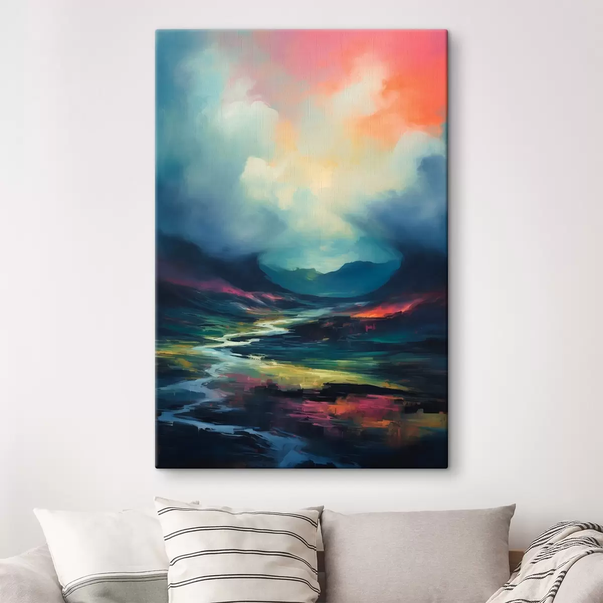 Obraz Abstraktní krajina s řekou a horami Č. s45627