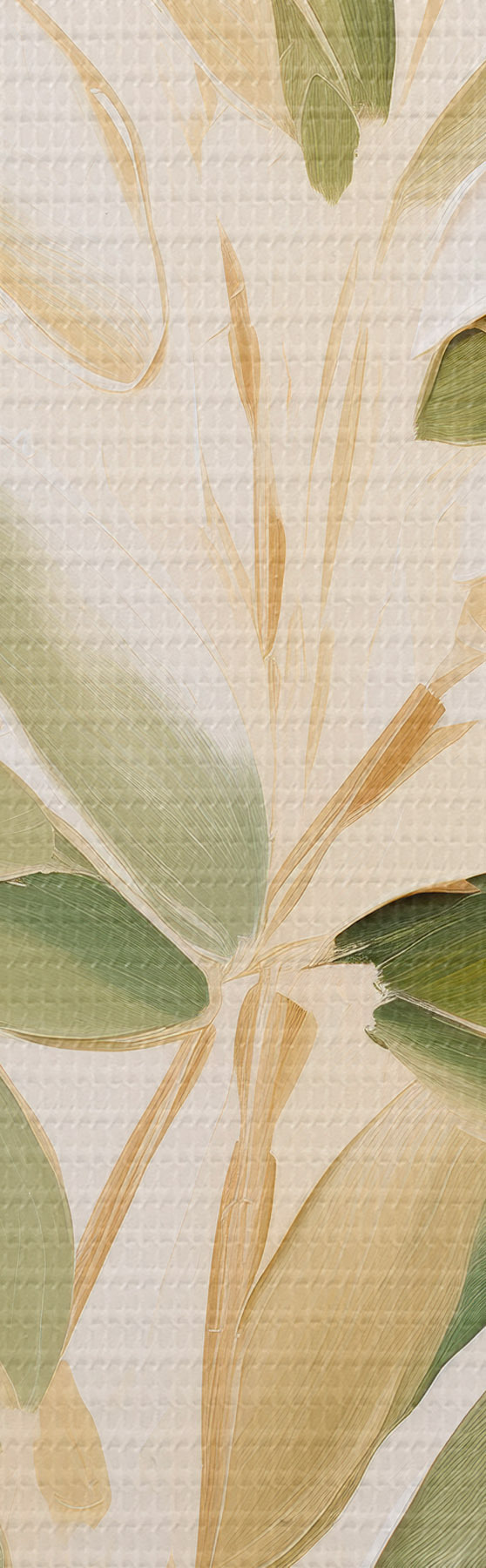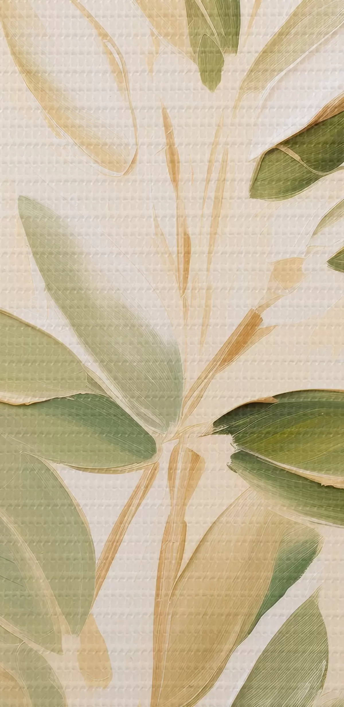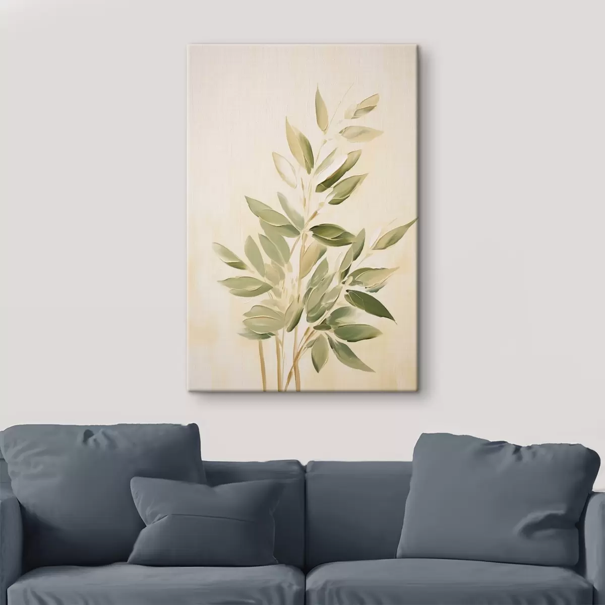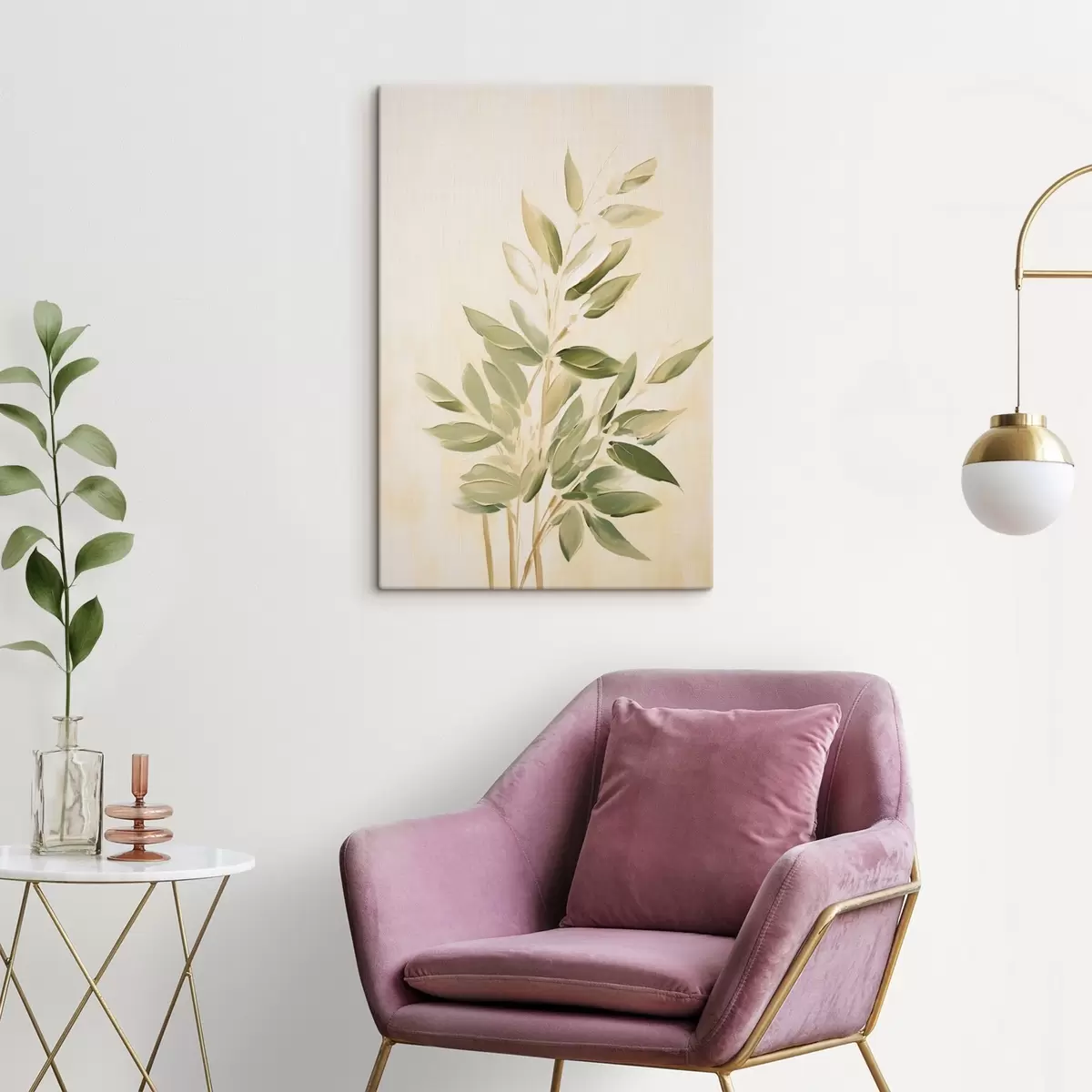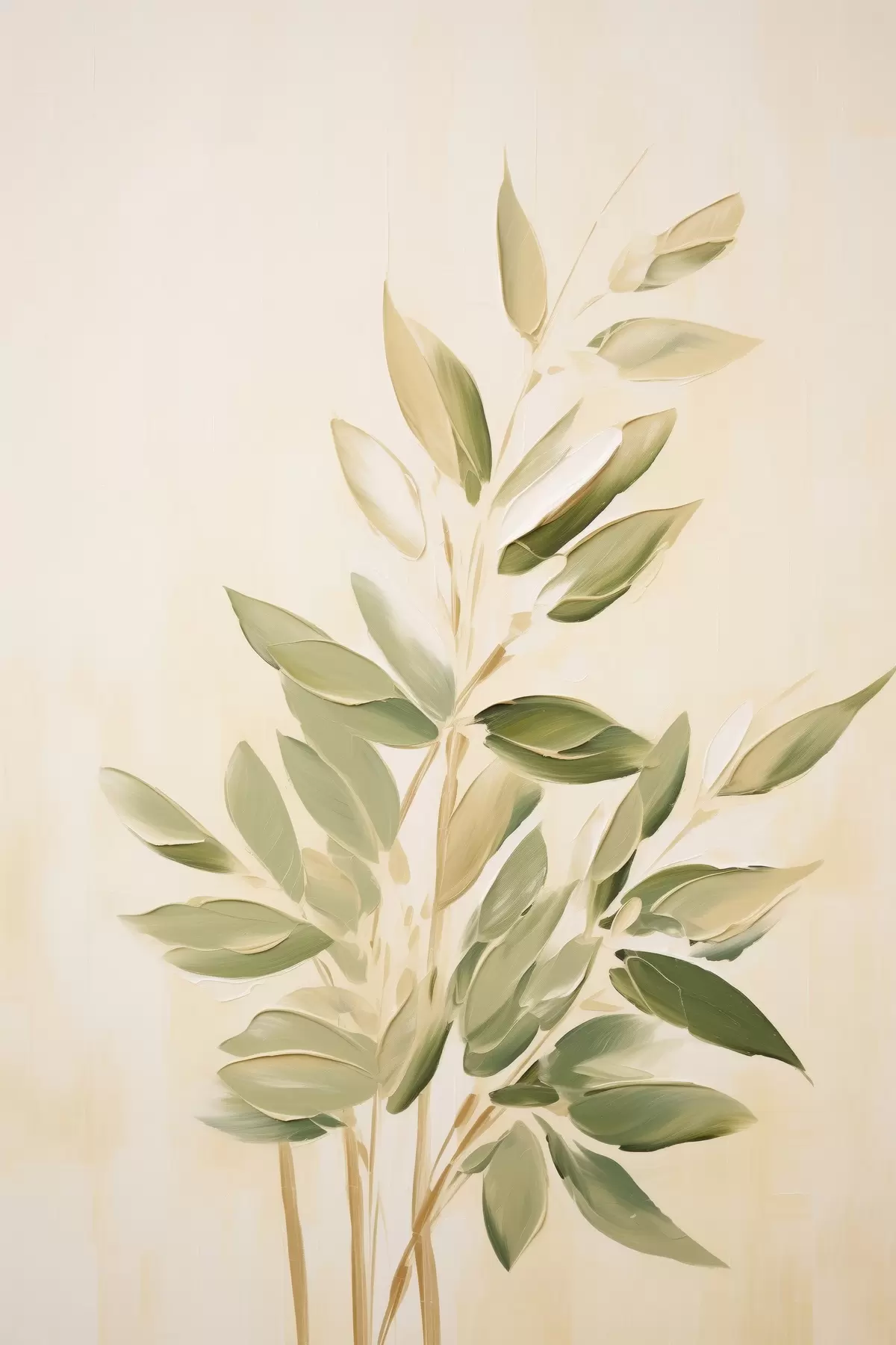 Obraz Větev se zelenými listy na světle béžovém pozadí Č. s45689