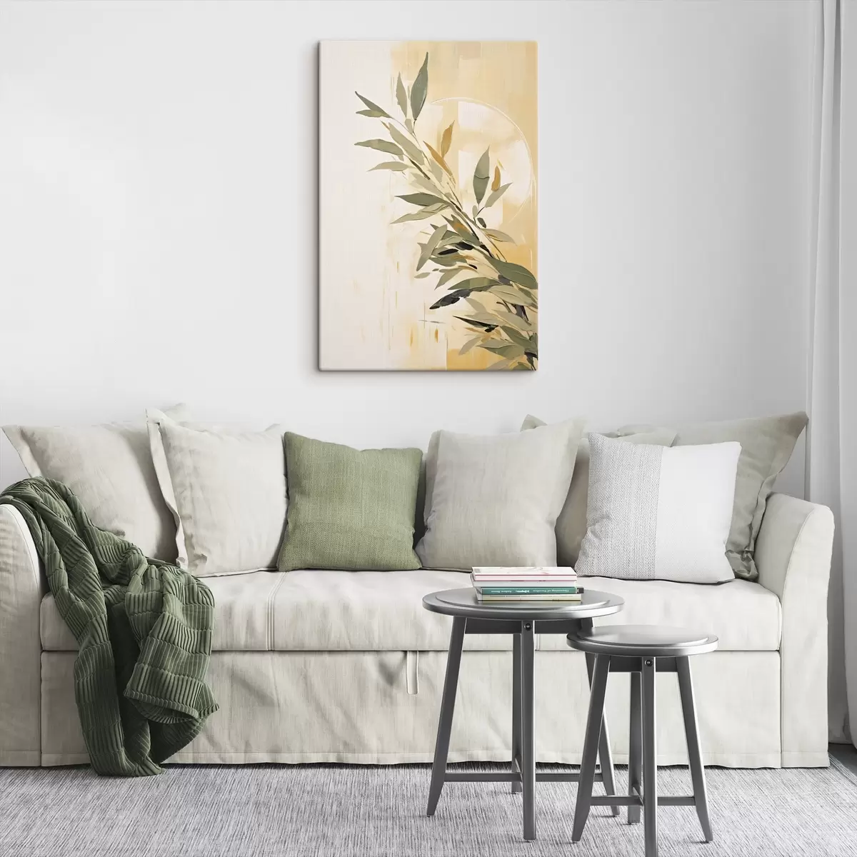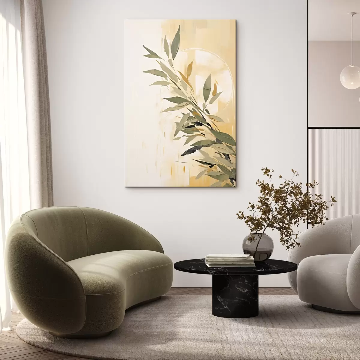 Obraz Botanická větev se zelenými listy na teplém pozadí Č. s45690
