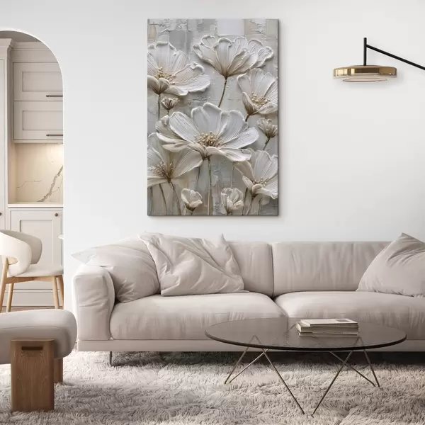 Obraz krémové květiny s imitací impasto stylu Č. s45713