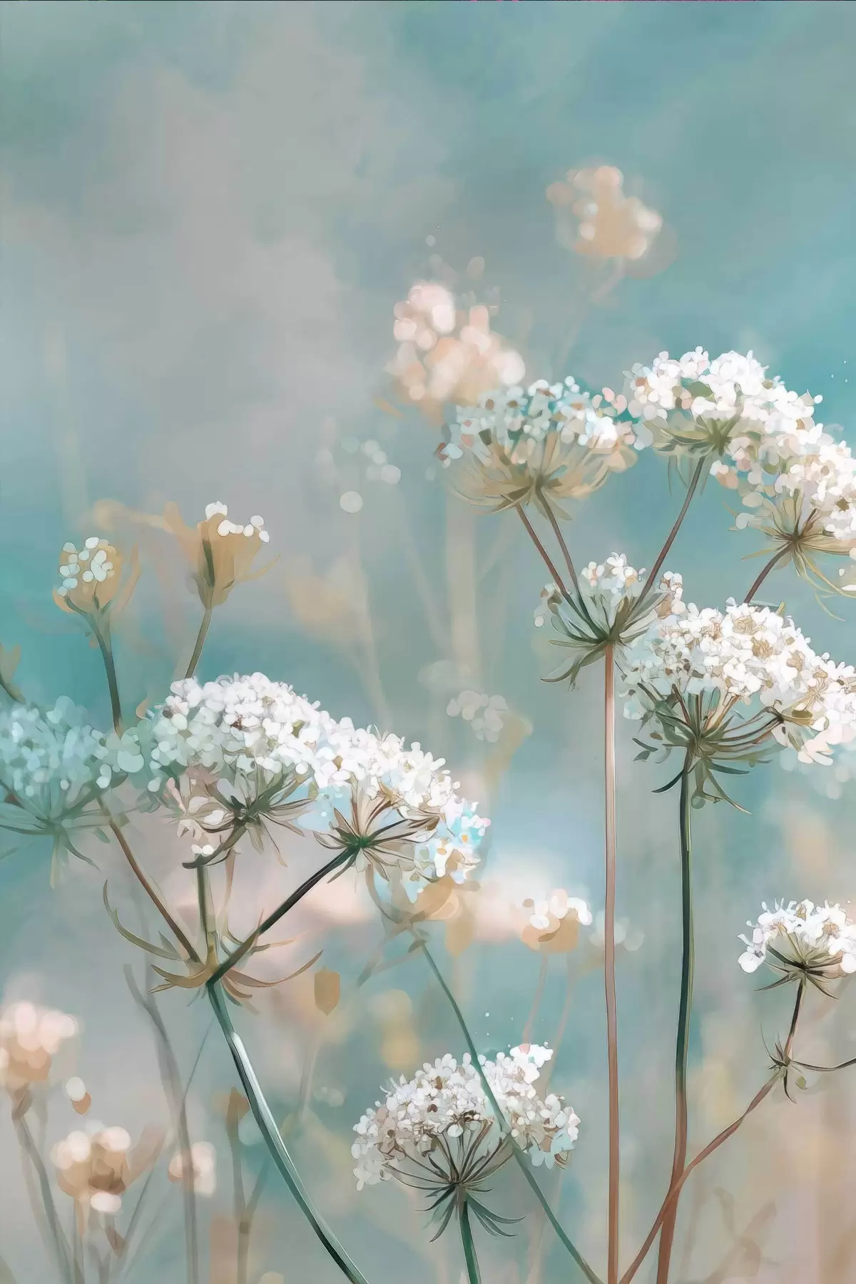 Obraz Květiny Queen Anne's Lace v akvarelovém stylu na modrém pozadí Č. s45721