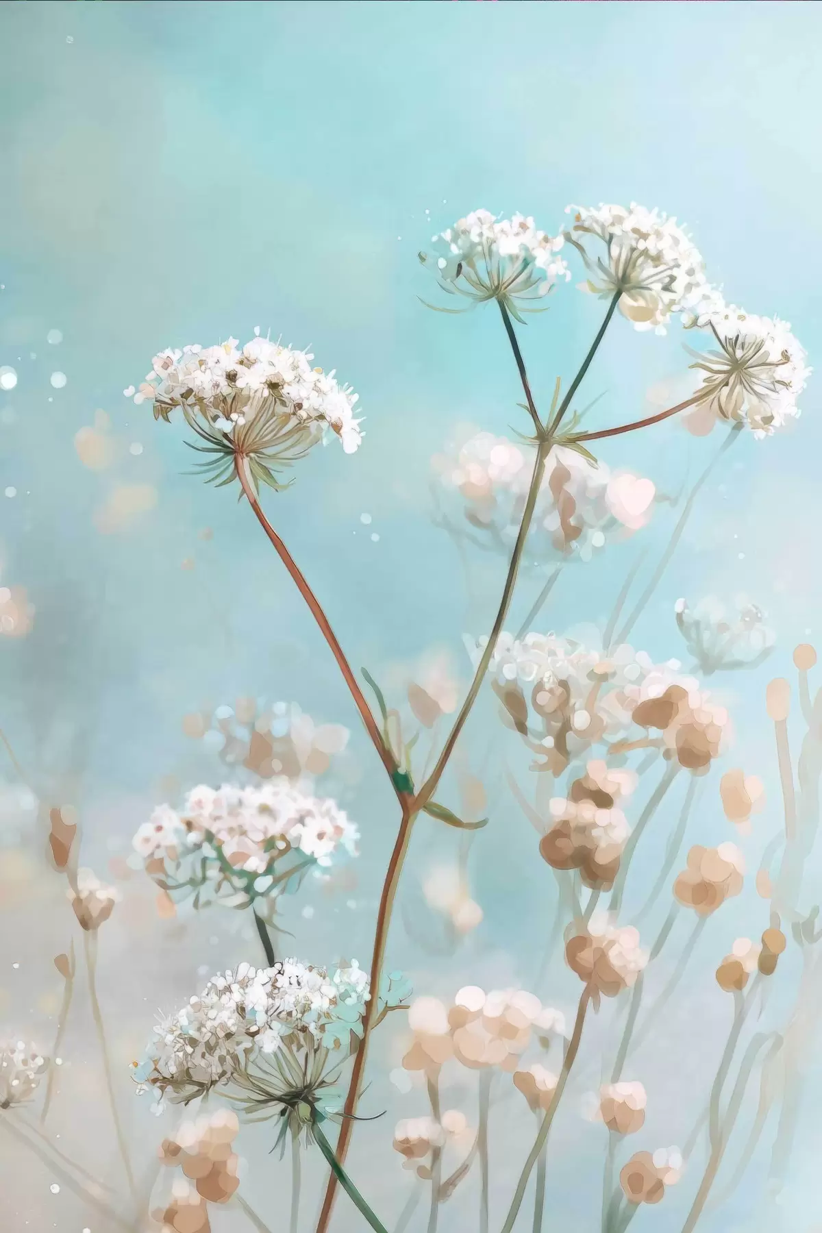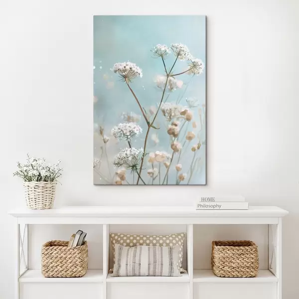 Obraz Květiny Queen Anne's Lace v akvarelovém stylu na modrém pozadí Č. s45722