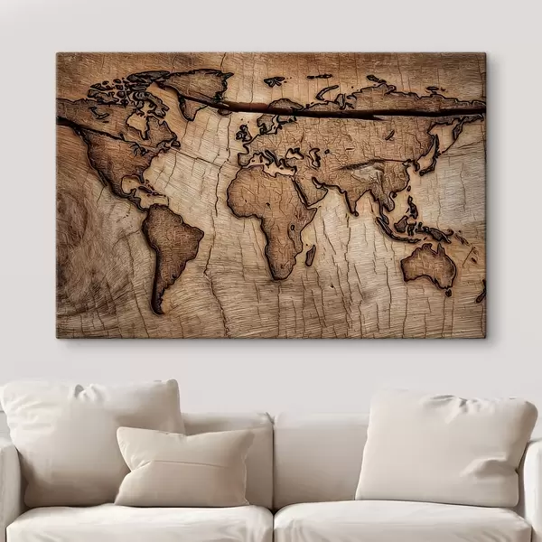 Obraz Vyrytá dřevěná mapa světa Č. s45805