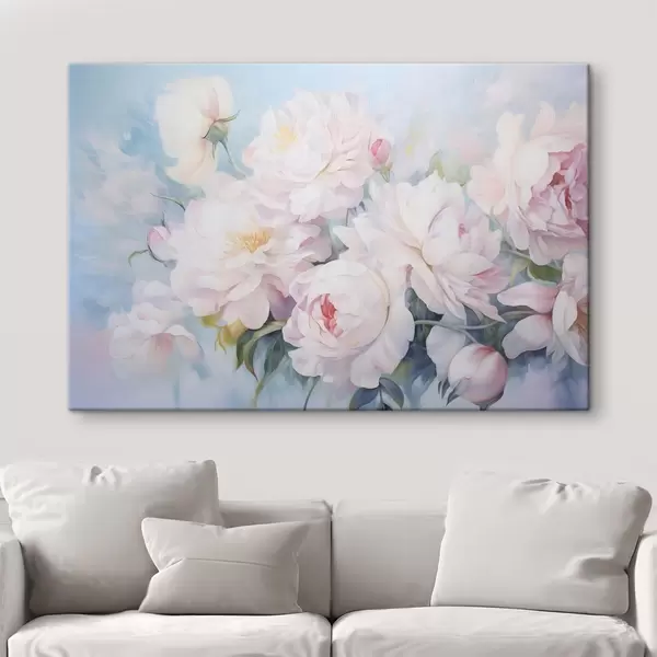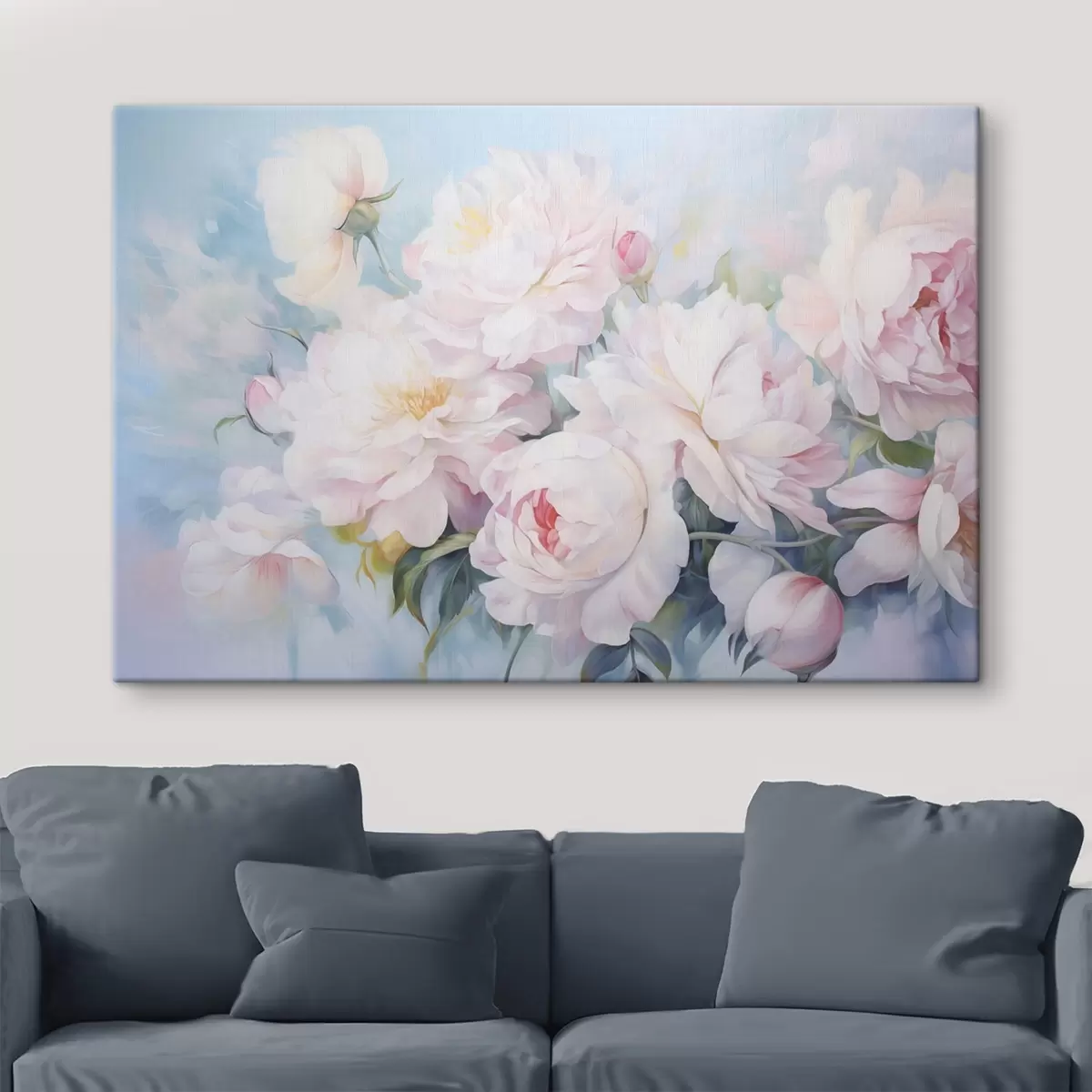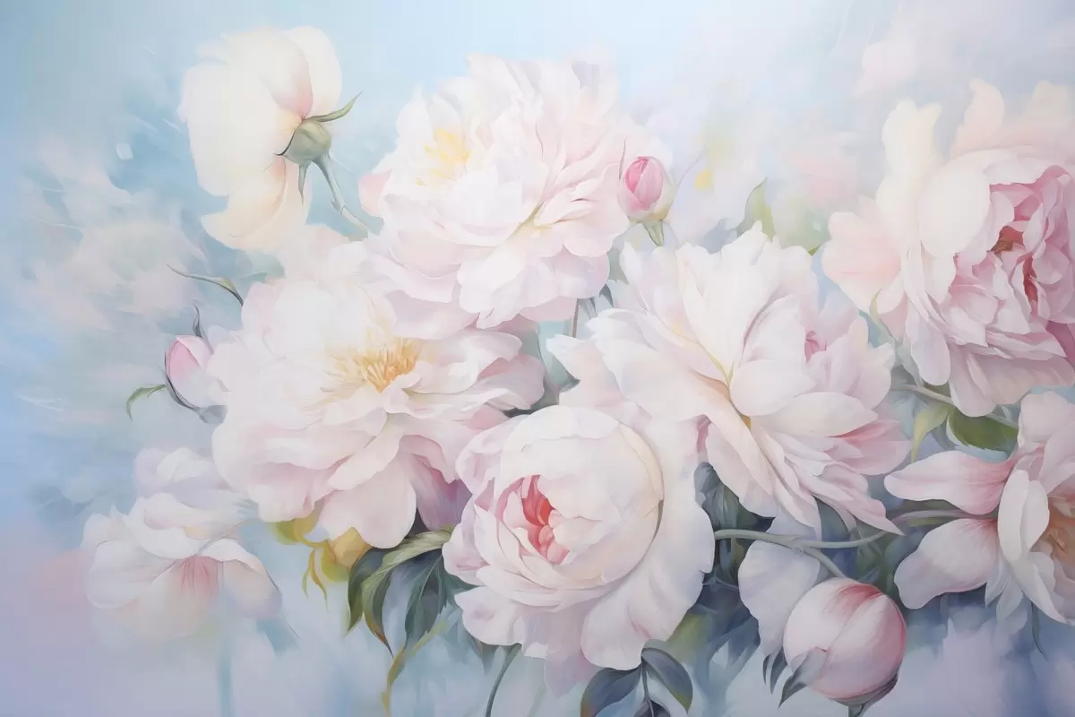 Obraz Jemné růžové pivoňky na nebesky modrém pozadí Č. s45813