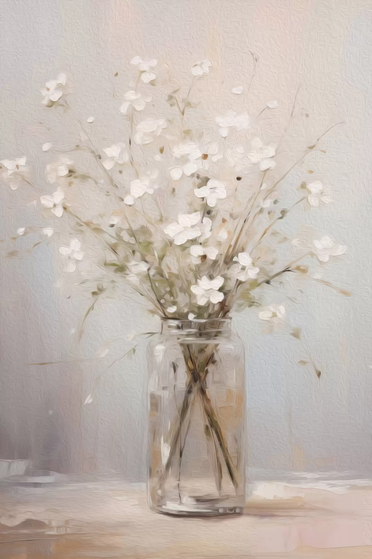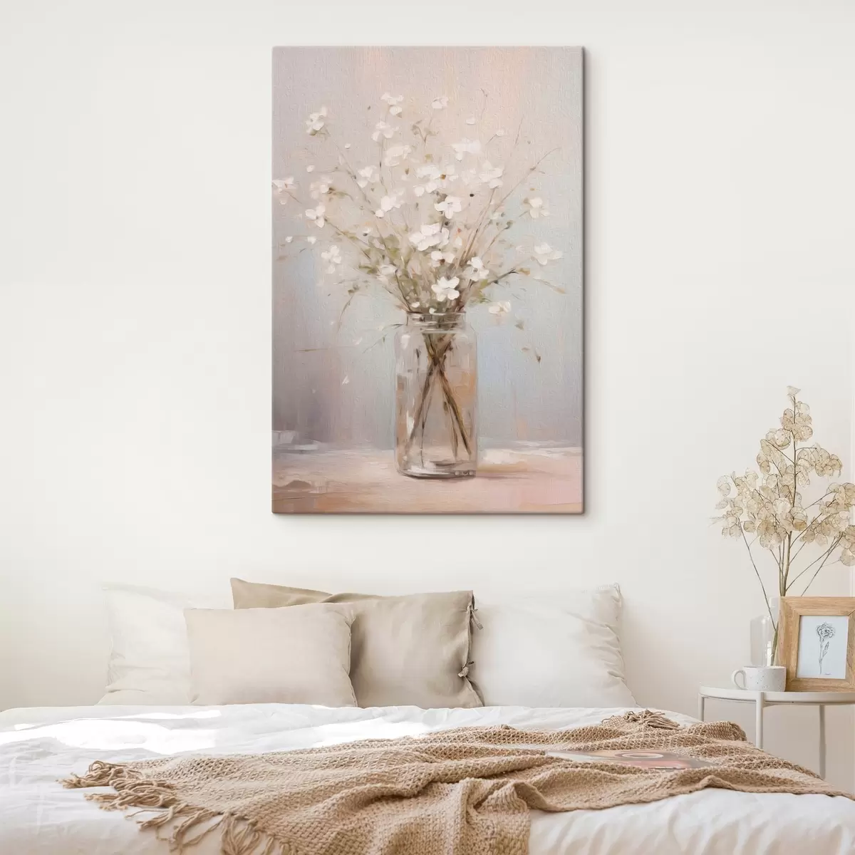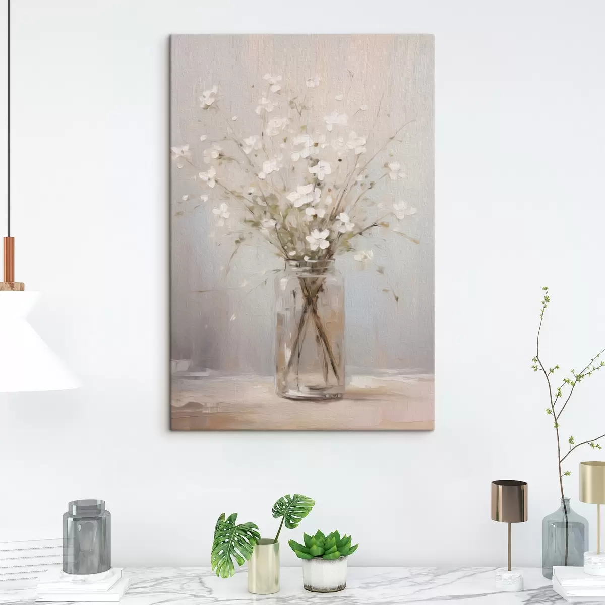 Obraz Kytice bílých květin v průhledné skleněné váze Č. s45814