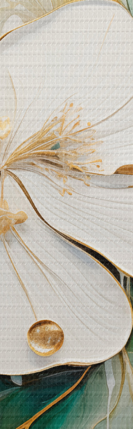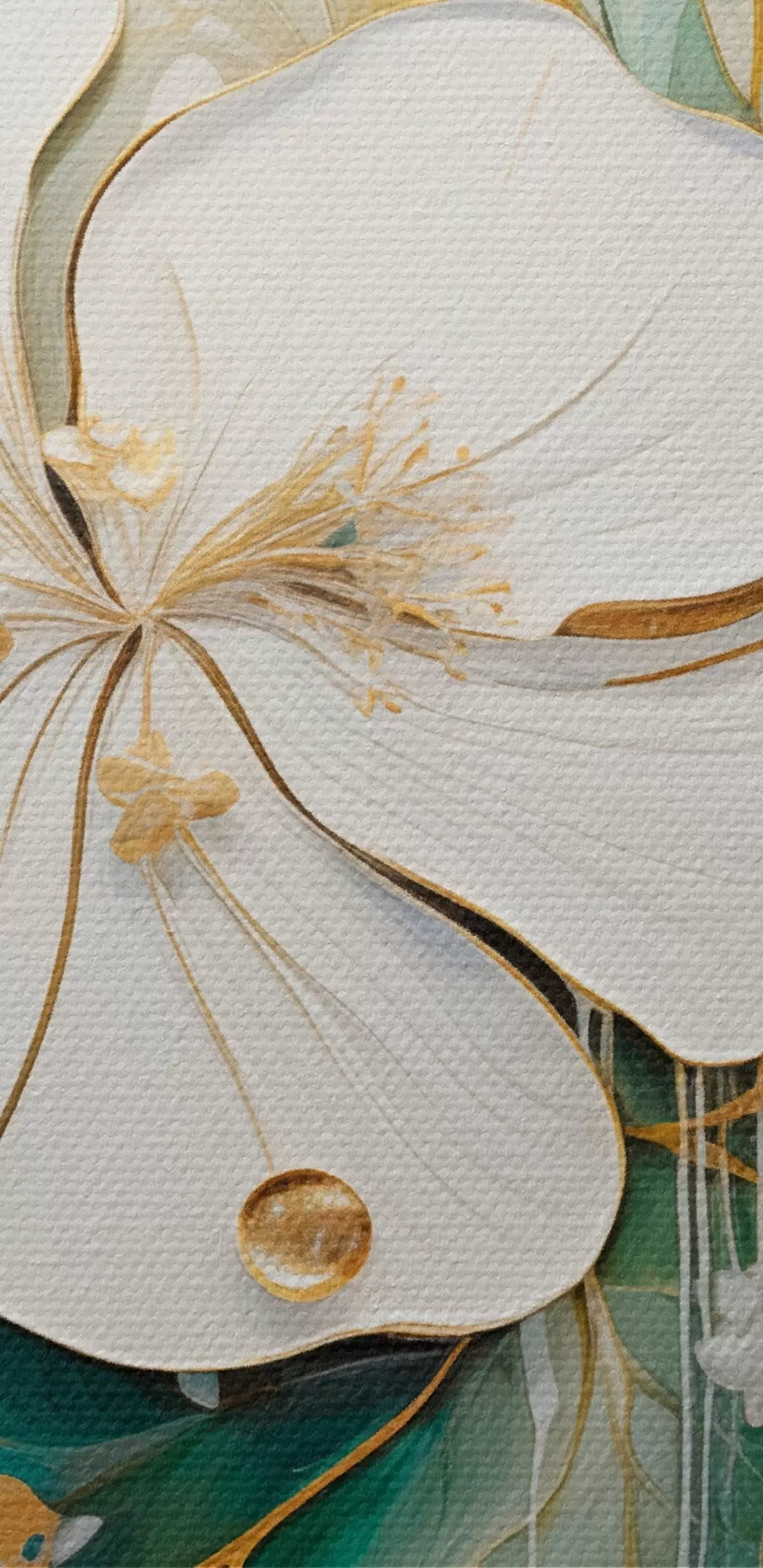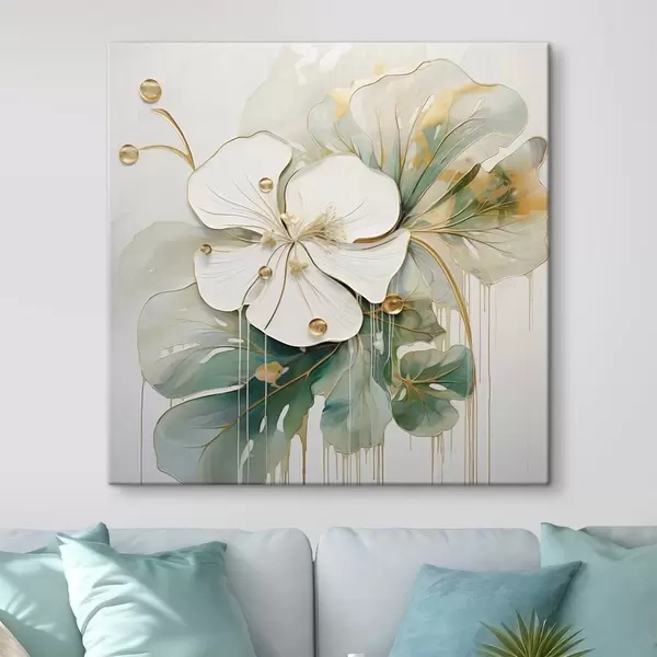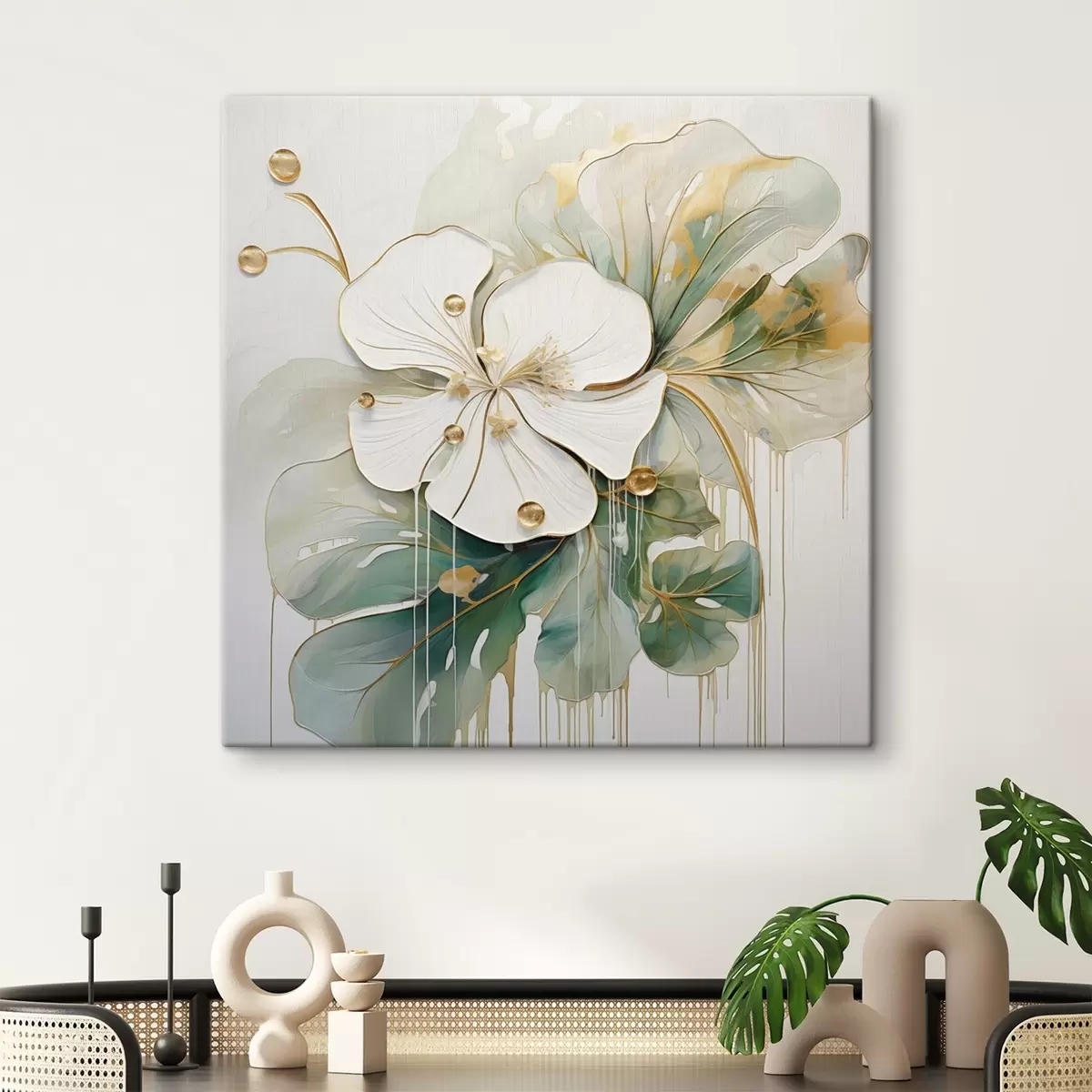 Obraz Bílý květ se žlutooranžovými detaily a zelenými listy Č. s45815