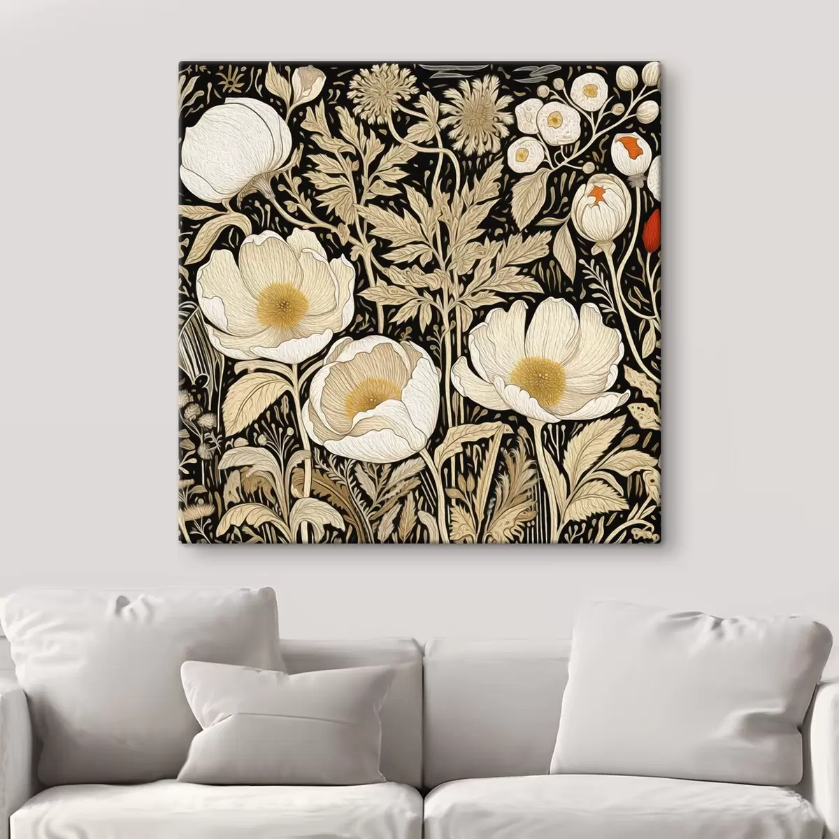 Obraz Krémové květy a trávy na černém pozadí Č. s45816