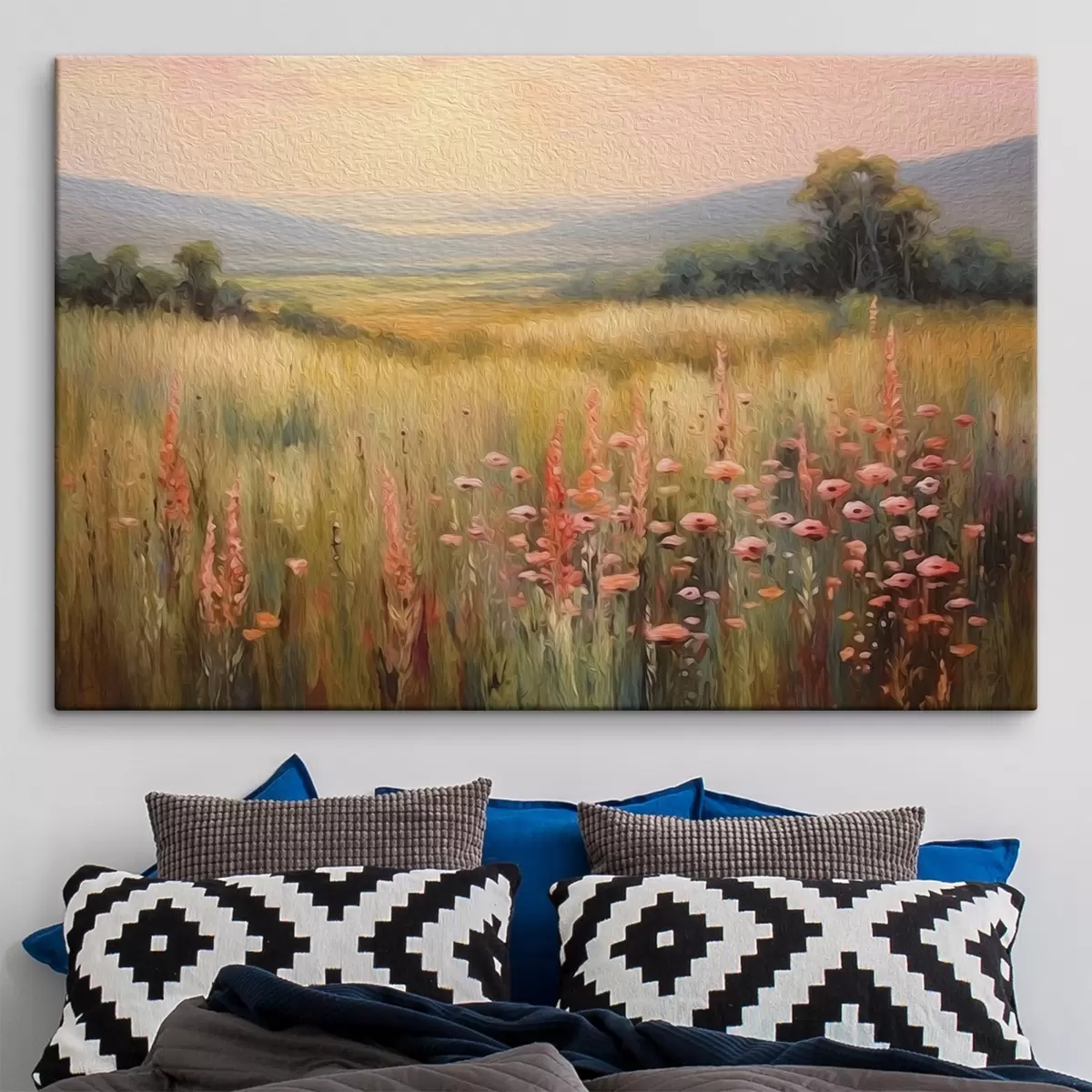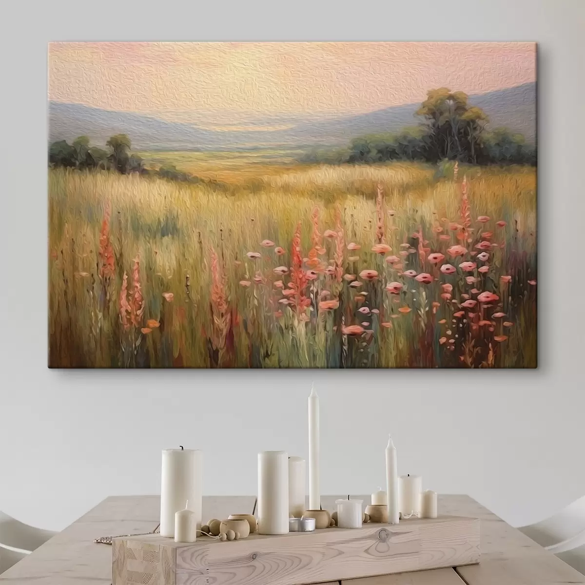 Obraz Polní krajina s květinami při západu slunce Č. s45818
