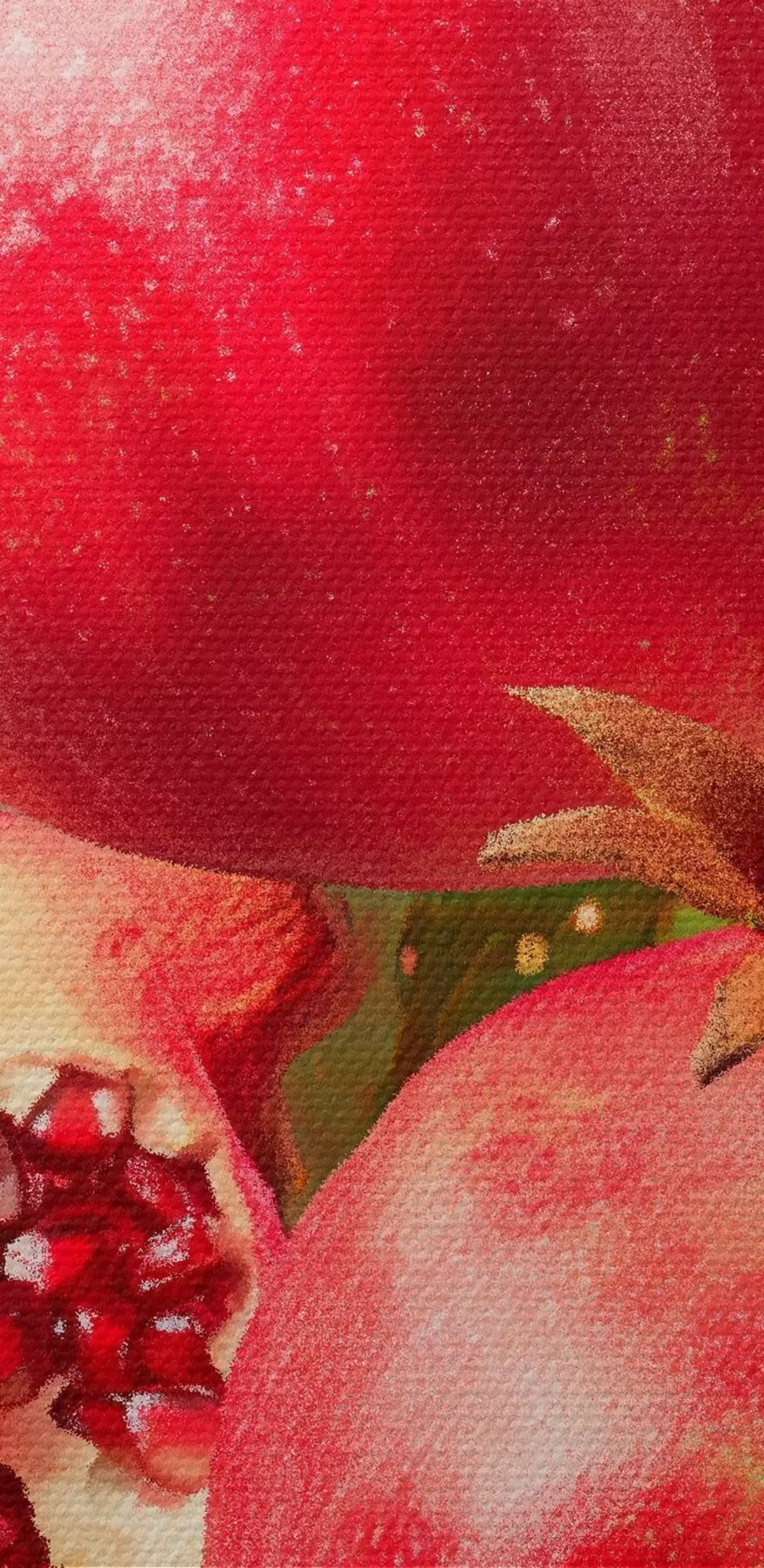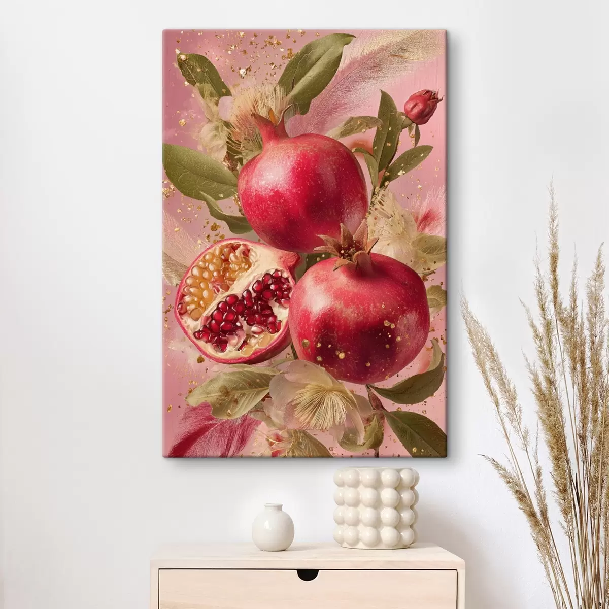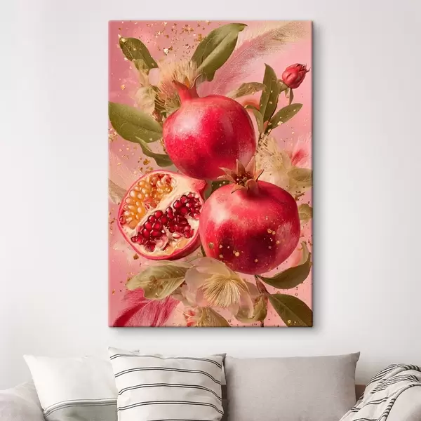Obraz Zralé granáty на růžovém pozadí s listy і skvrnami Č. s45868