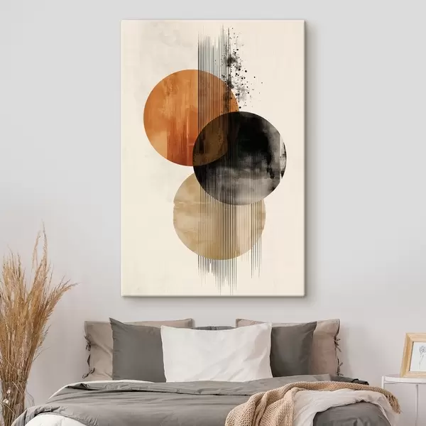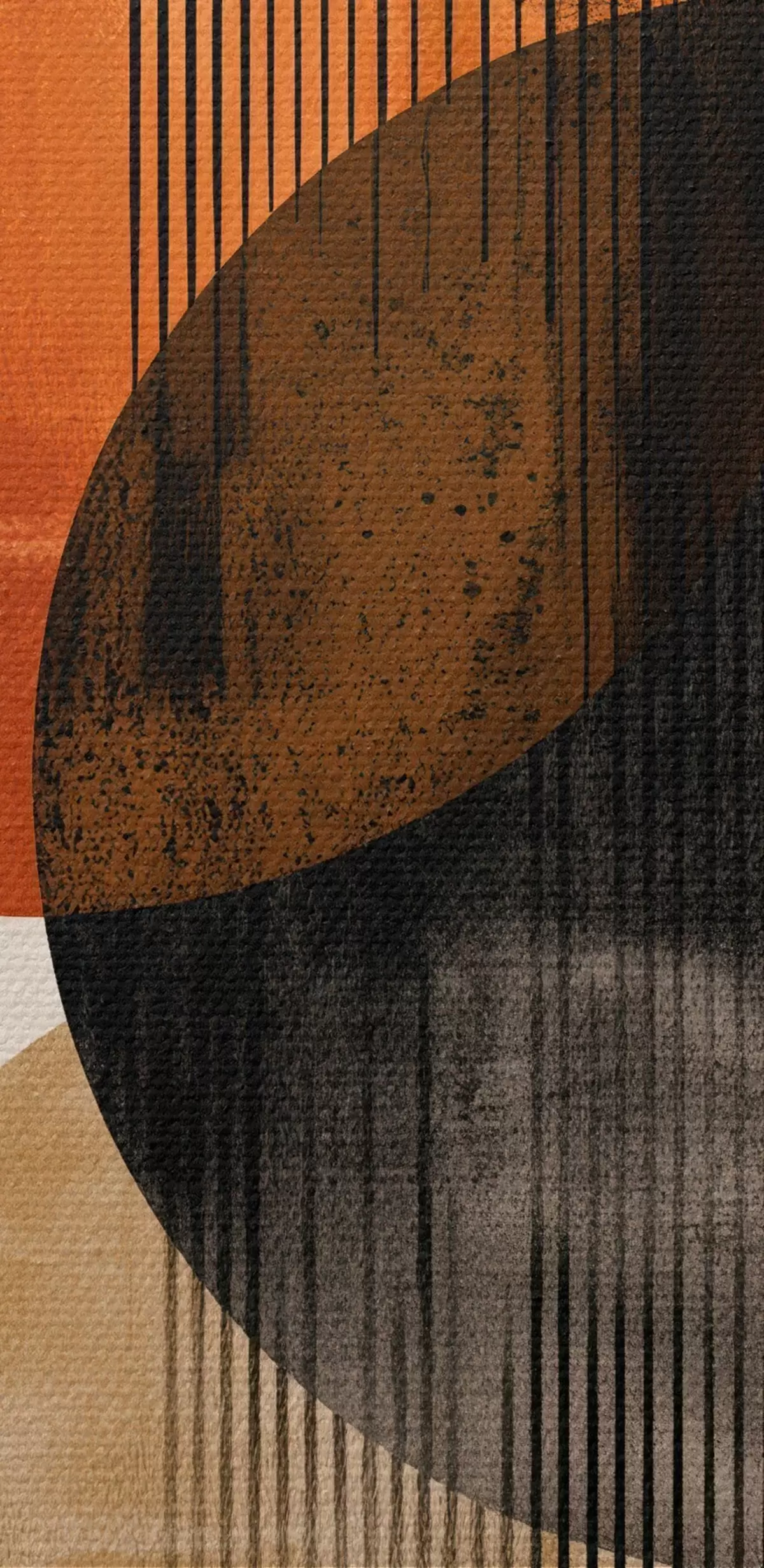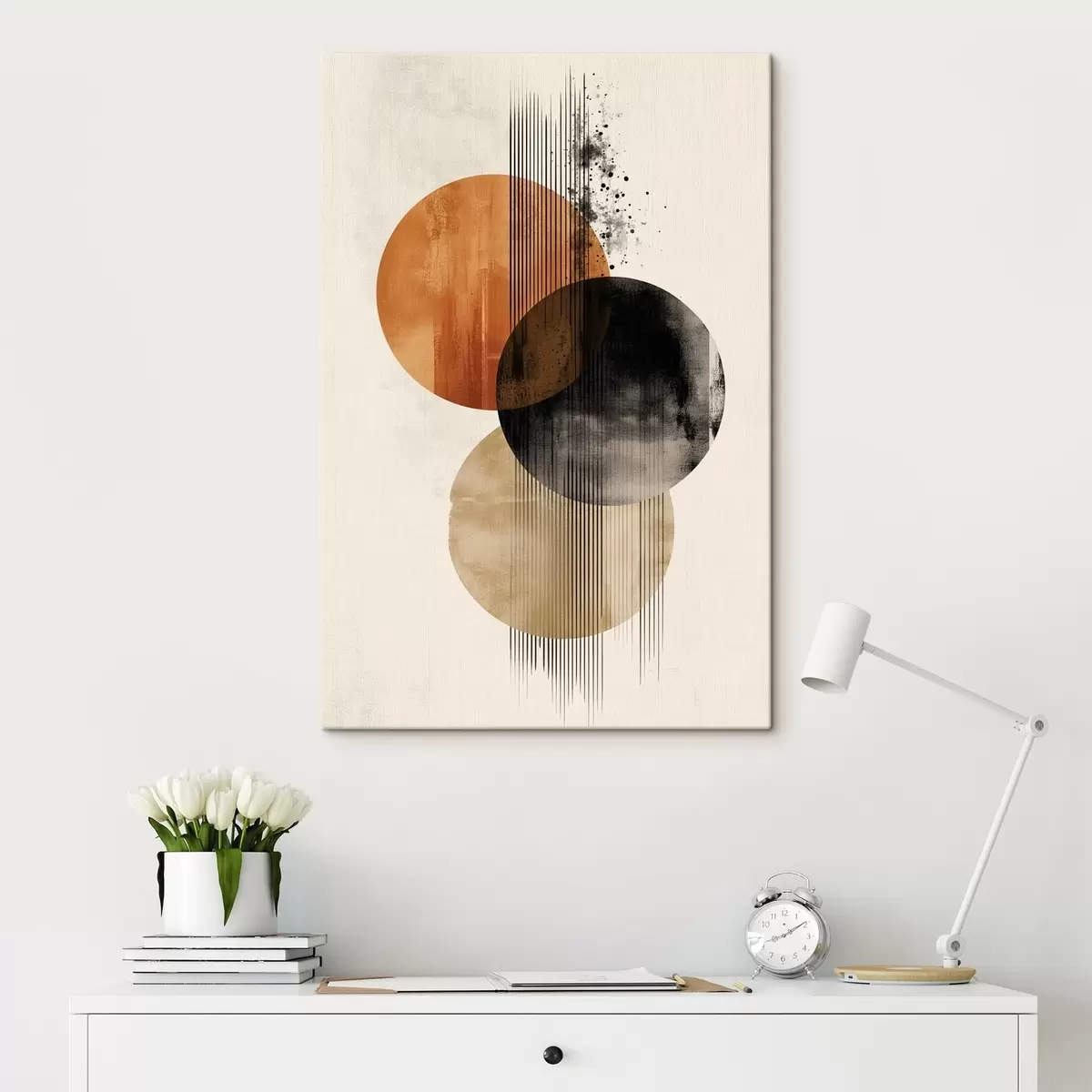 Obraz Tři texturované kruhy s čarami v terakotově černé paletě Č. s45885