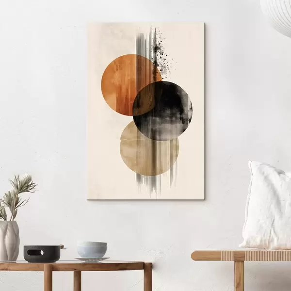 Obraz Tři texturované kruhy s čarami v terakotově černé paletě Č. s45885