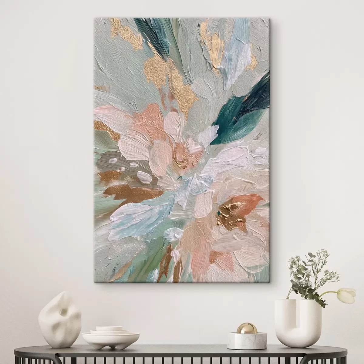 Obraz Pastelové květinové tahy se žlutými skvrnkami Č. s45899