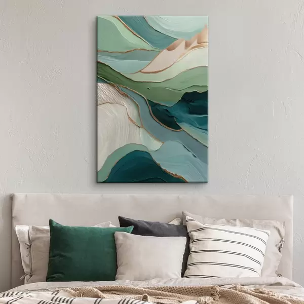 Obraz Vrstvená zelená abstrakce se žlutými čarami a hloubkou Č. s45902