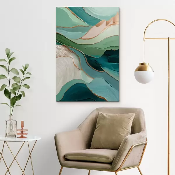 Obraz Vrstvená zelená abstrakce se žlutými čarami a hloubkou Č. s45902