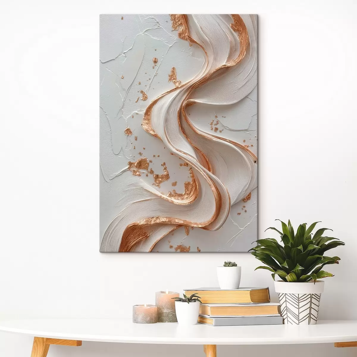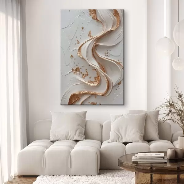 Obraz Bílo-žluté texturované tahy s kovovými akcenty Č. s45906