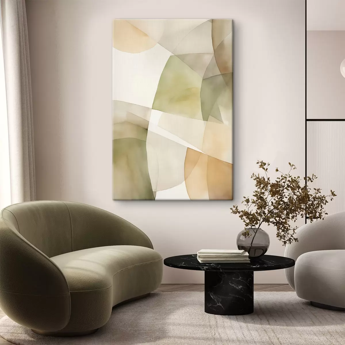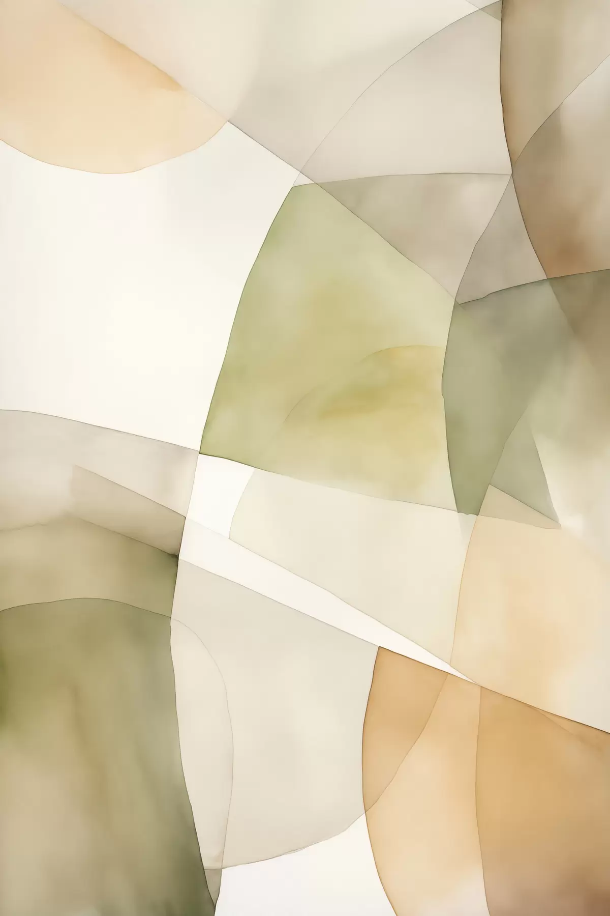 Obraz Abstraktní akvarelové geometrické tvary v odstínech zelené, hnědé a béžové Č. s45928