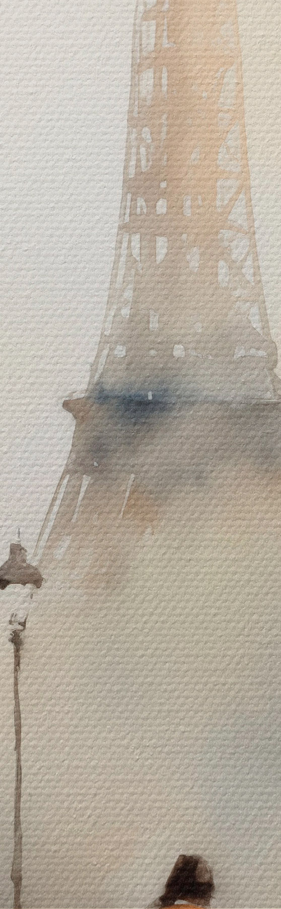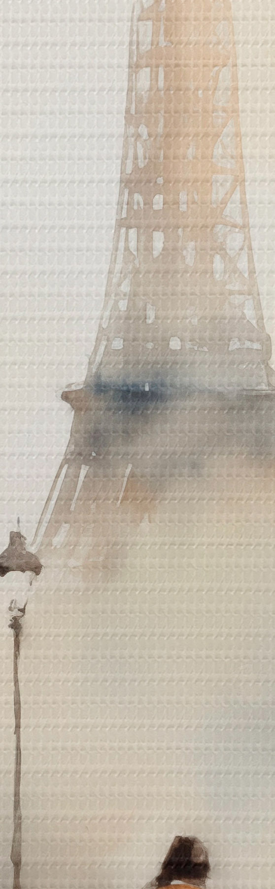 Obraz Deštivý podzimní den v Paříži s Eiffelovou věží v pozadí a vintage pouličními lampami Č. s45931