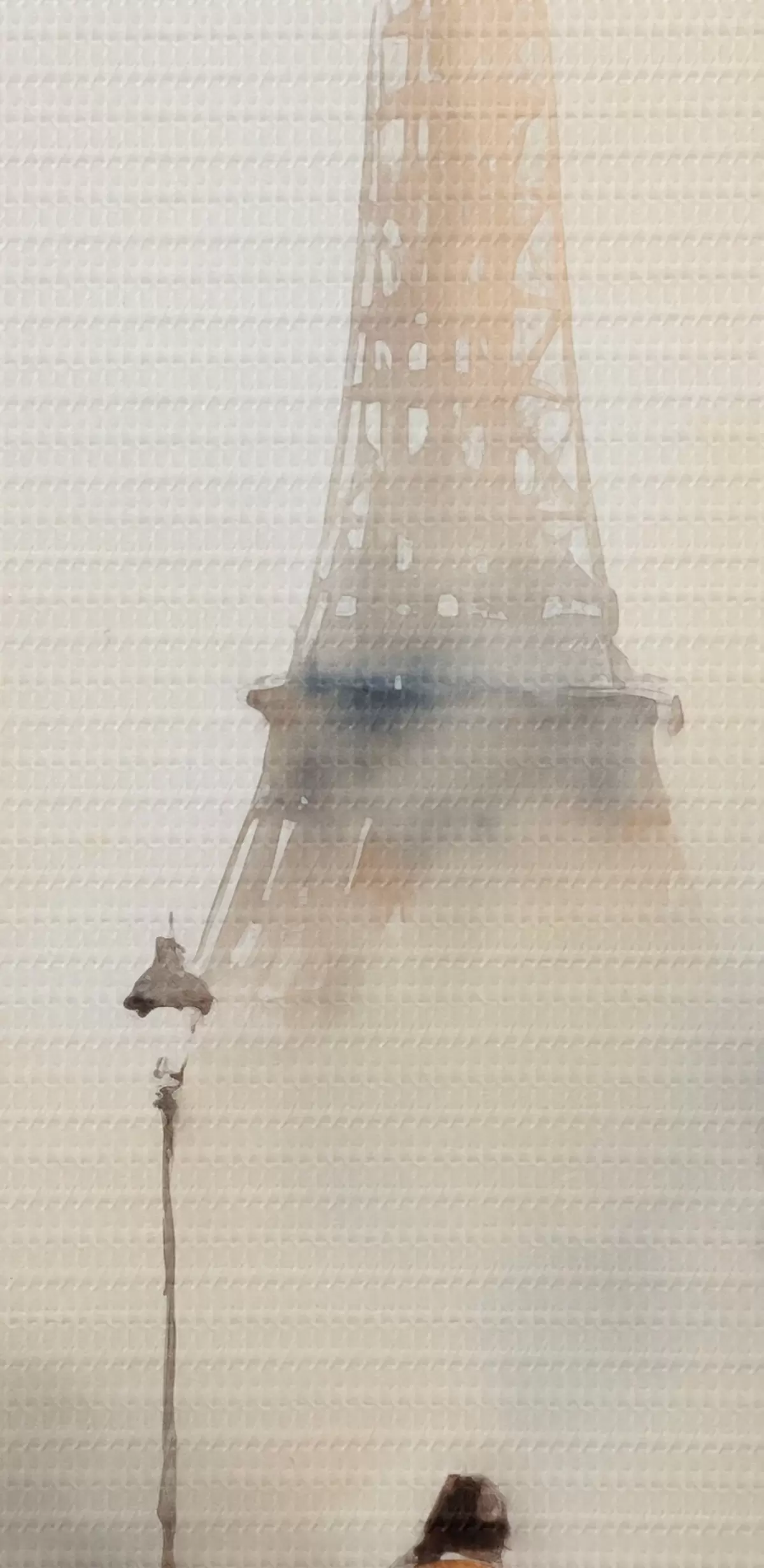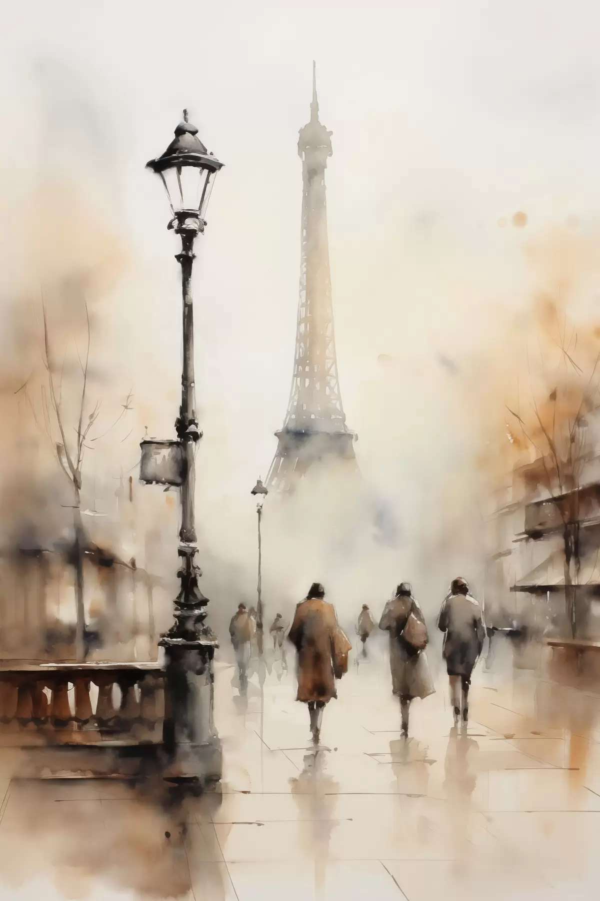 Obraz Deštivý podzimní den v Paříži s Eiffelovou věží v pozadí a vintage pouličními lampami Č. s45931