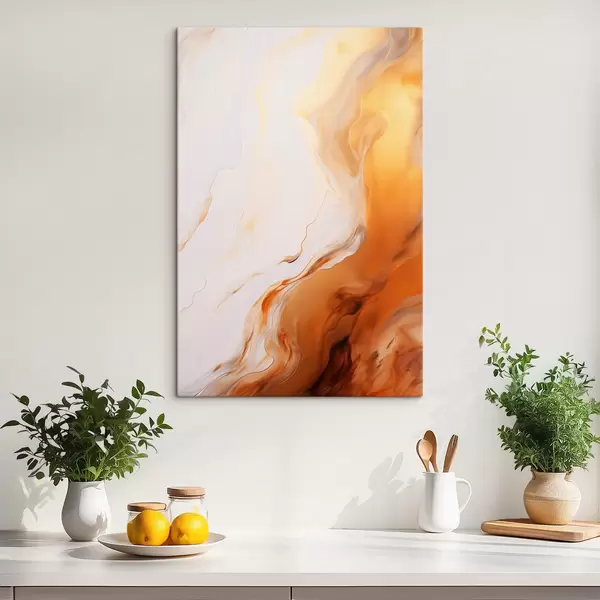 Obraz Abstraktní malba v bílé a oranžové barvě, fluidní umění s vlnitými liniemi, moderní umění Č. s45939