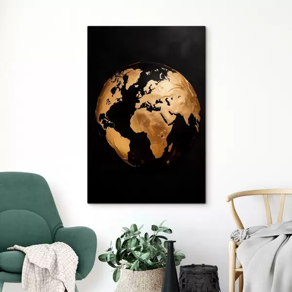 Obraz Žlutý texturovaný abstraktní zeměkoule, planeta na černém pozadí, moderní minimalistické umění Č. s45942
