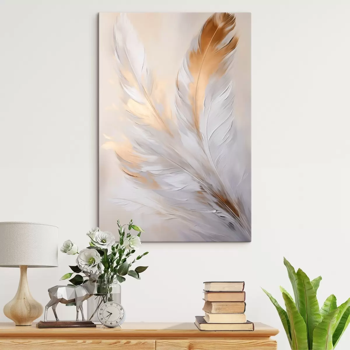 Obraz Peří s oranžovými akcenty, měkké osvětlení, minimalistická kompozice s texturou, moderní umění Č. s45944
