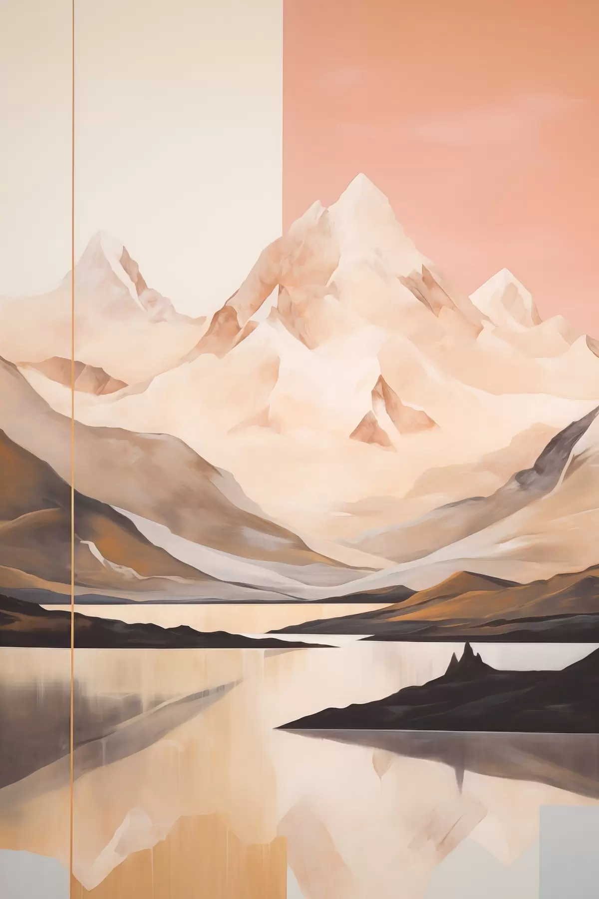 Obraz Abstraktní krajina s horami a jezerem, pastelové barvy, minimalistický styl Č. s45949