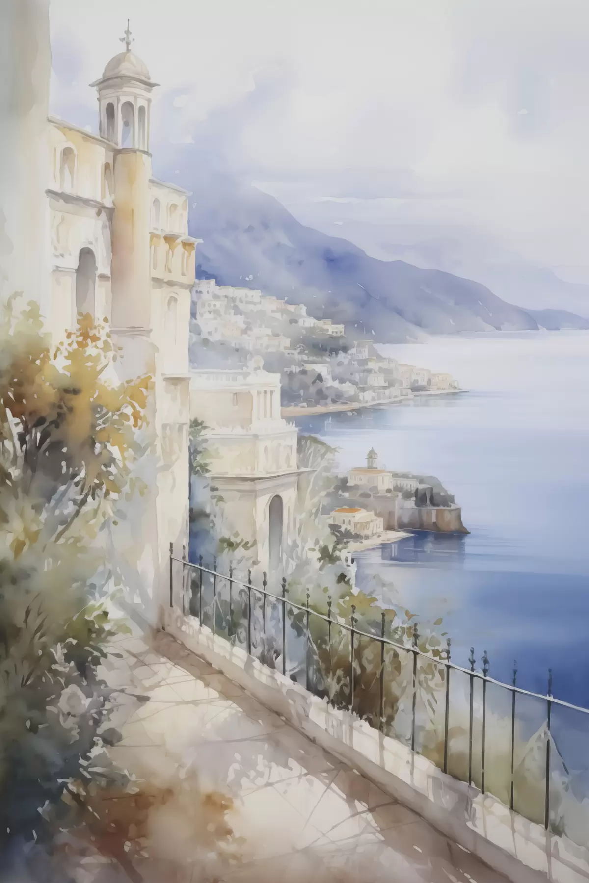 Obraz Zátoka poblíž města imitace akvarelu Č. s45979