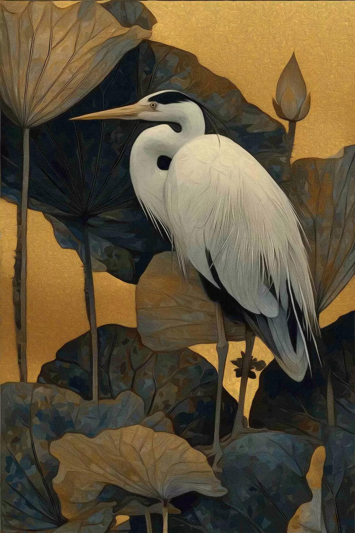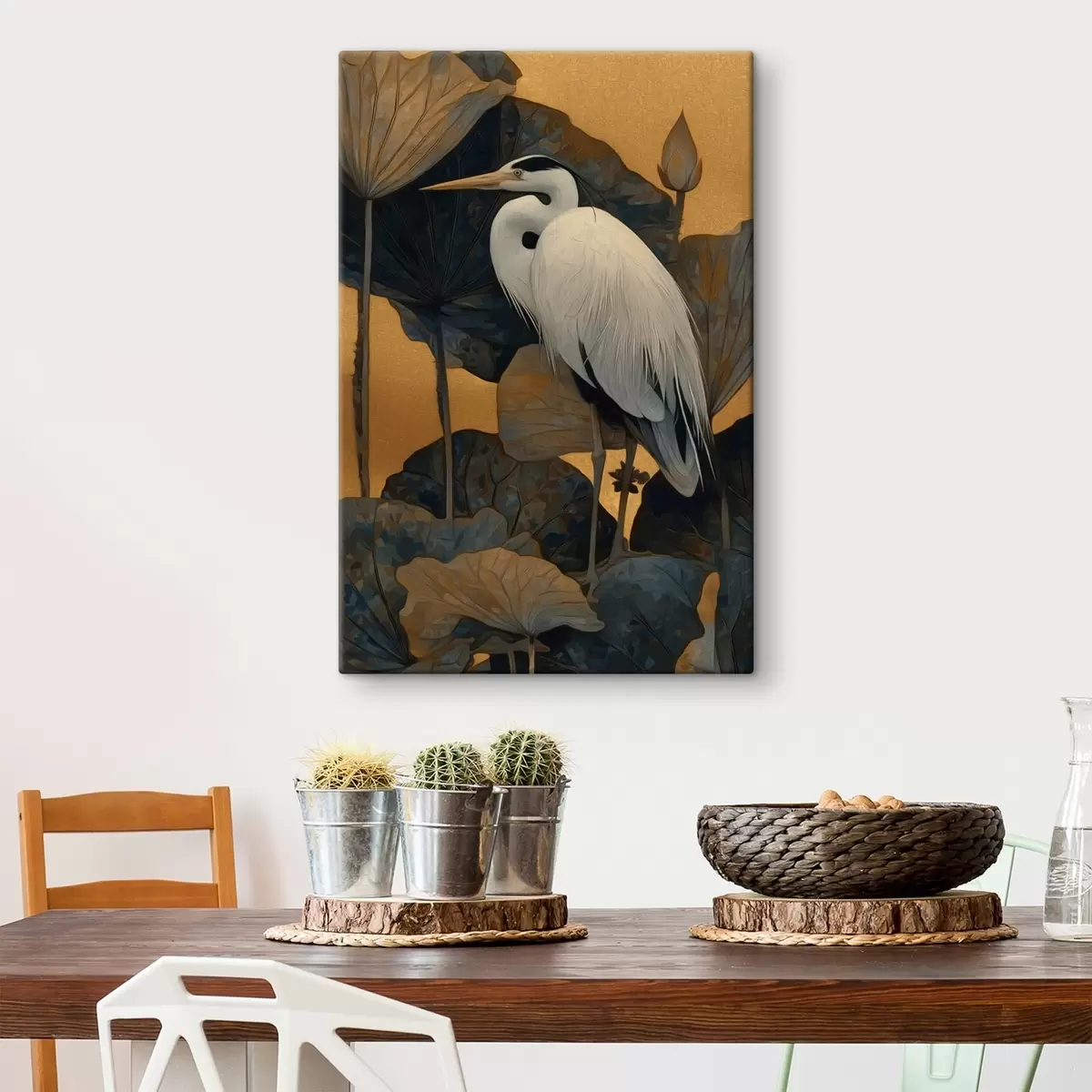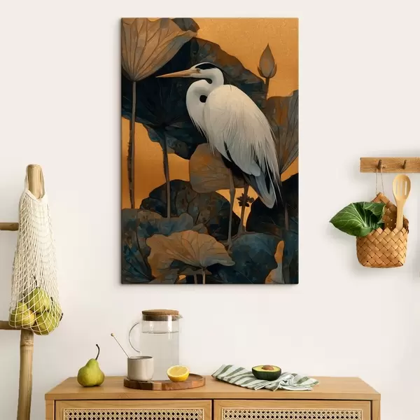Obraz Bílá volavka mezi velkými listy na teplém pozadí Č. s46147