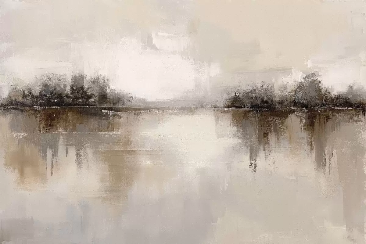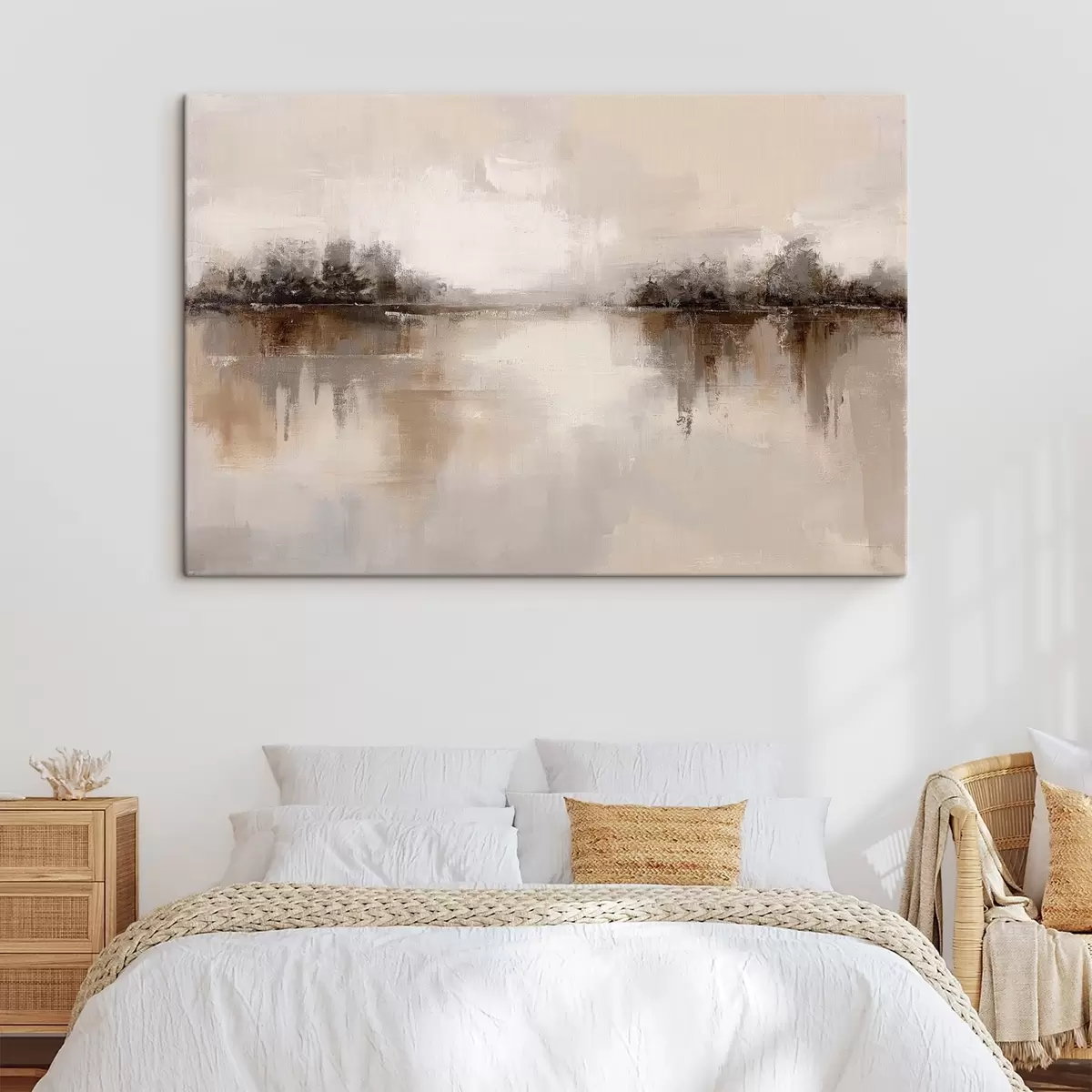 Obraz Měkká krajina s jezerem v teplých béžovo-šedých tónech Č. s46158