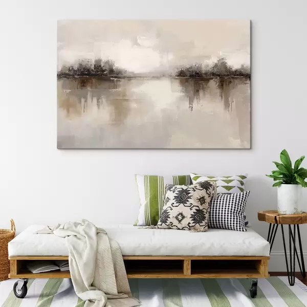 Obraz Měkká krajina s jezerem v teplých béžovo-šedých tónech Č. s46158