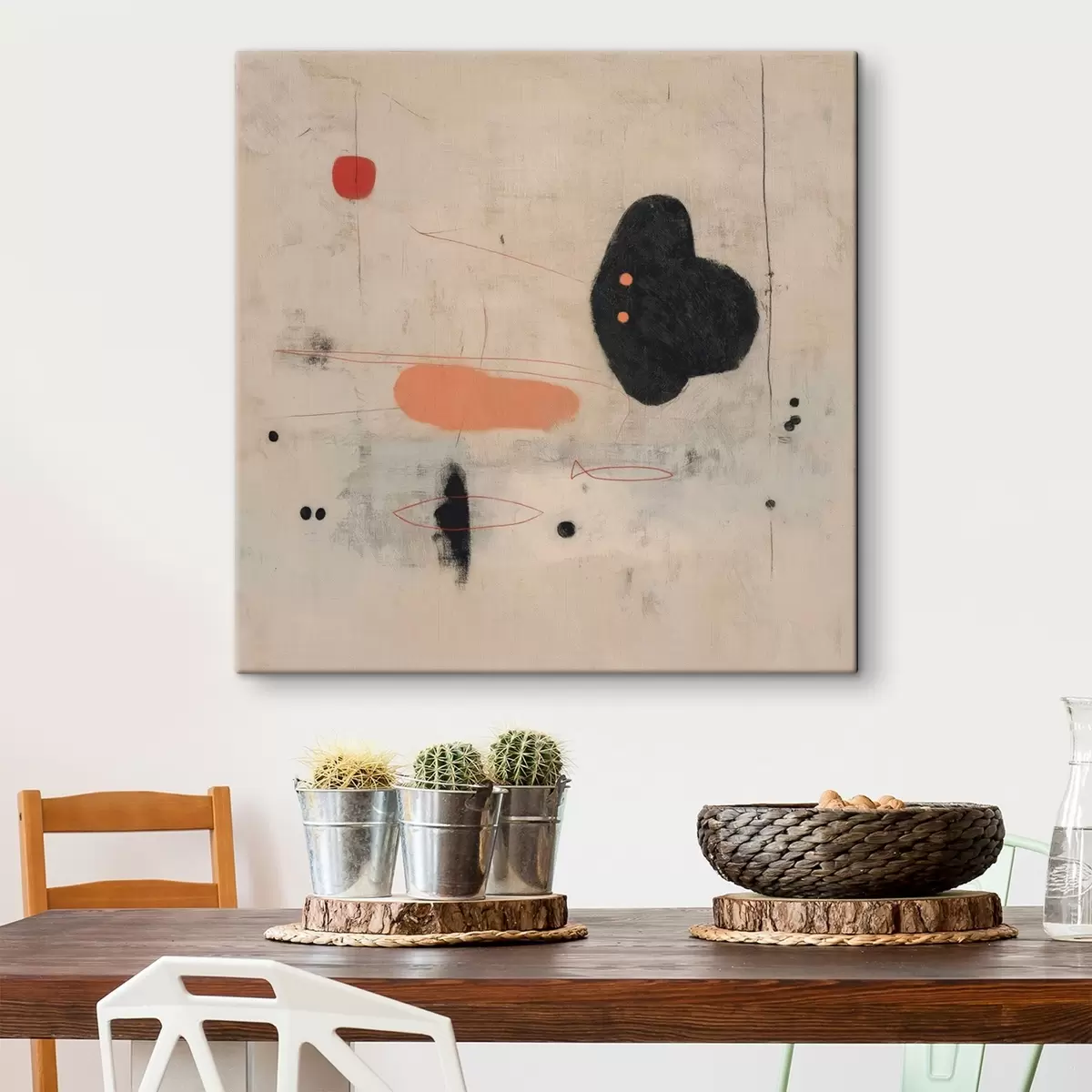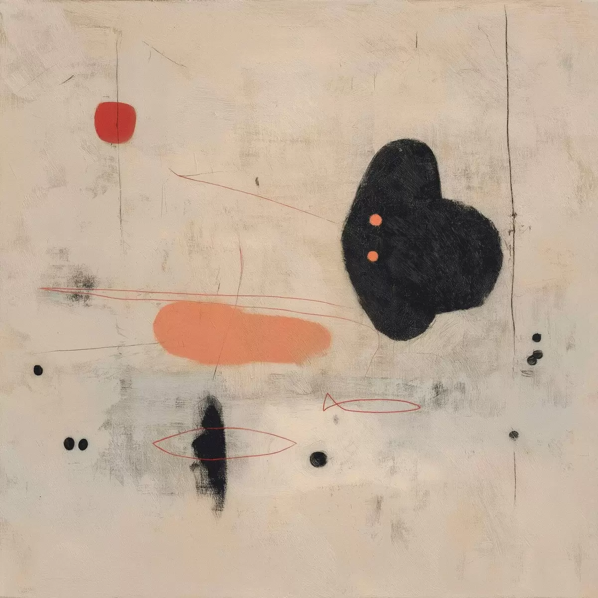 Obraz Minimalistická abstraktní kresba s černými a korálovými akcenty Č. s46159