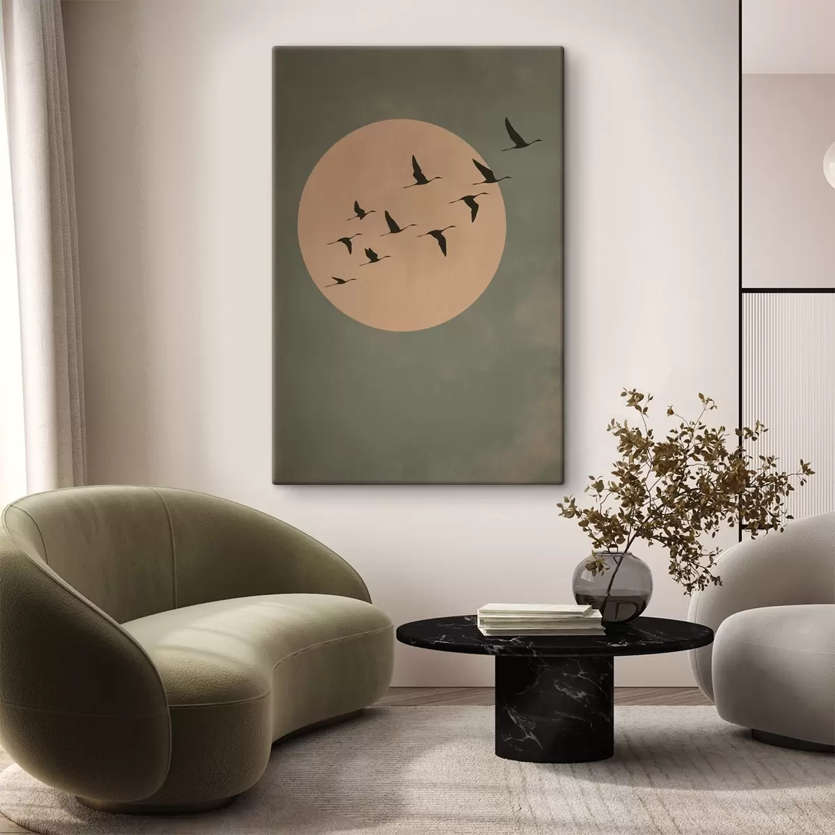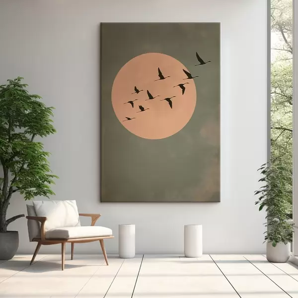 Obraz Hejno ptáků letící proti velkému teplému měsíci Č. s46162