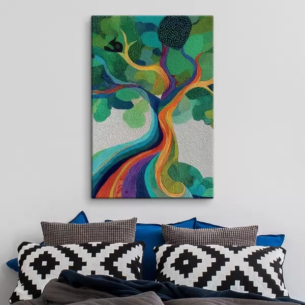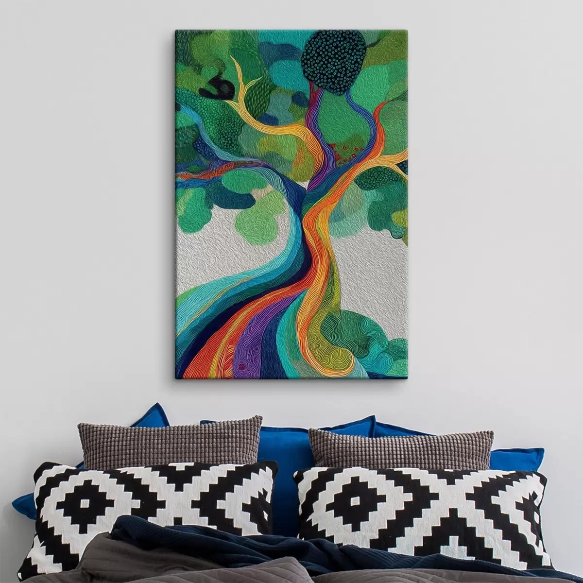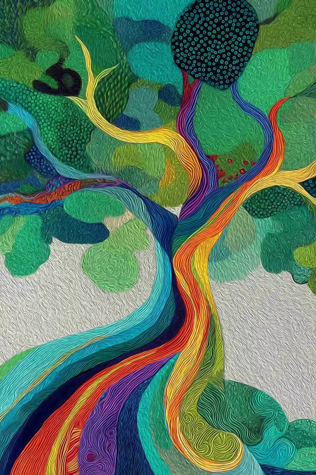 Obraz Strom s duhovými větvemi na zeleném pozadí Č. s46173