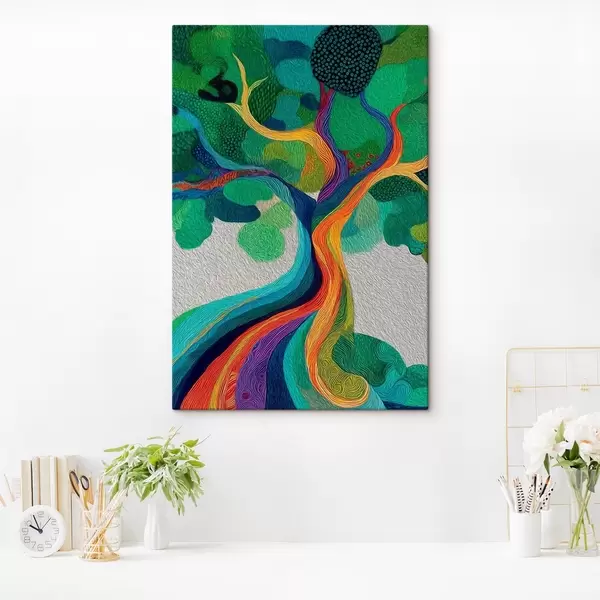 Obraz Strom s duhovými větvemi na zeleném pozadí Č. s46173