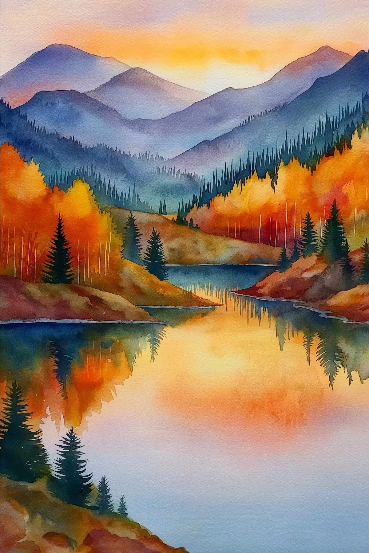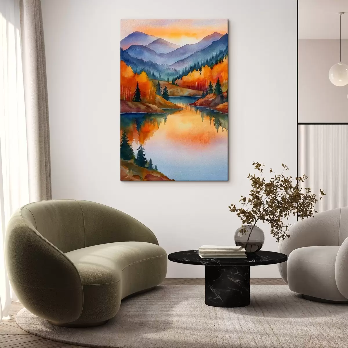 Obraz Podzimní krajina s horami odrážejícími se v klidném jezeře Č. s46174