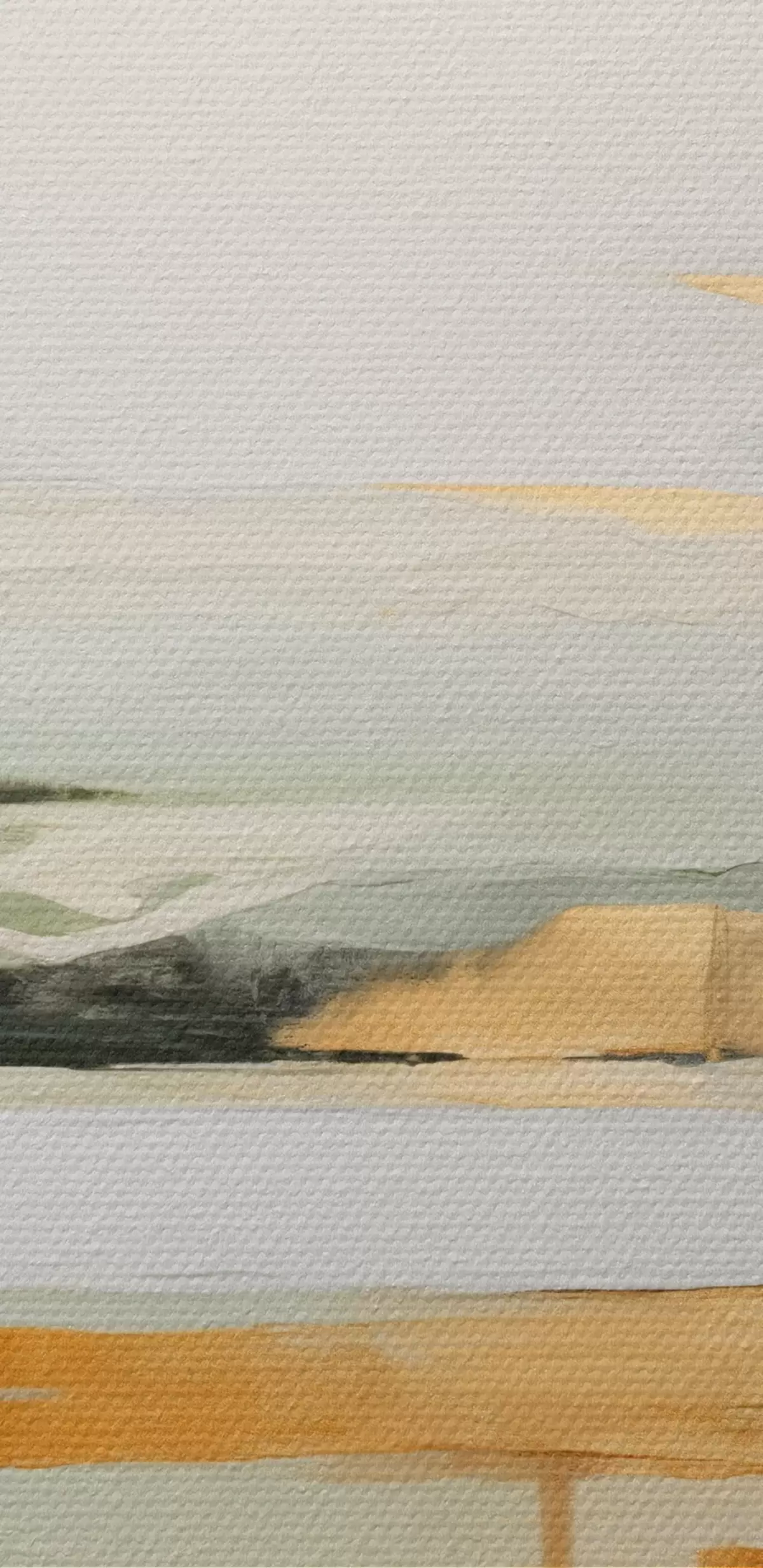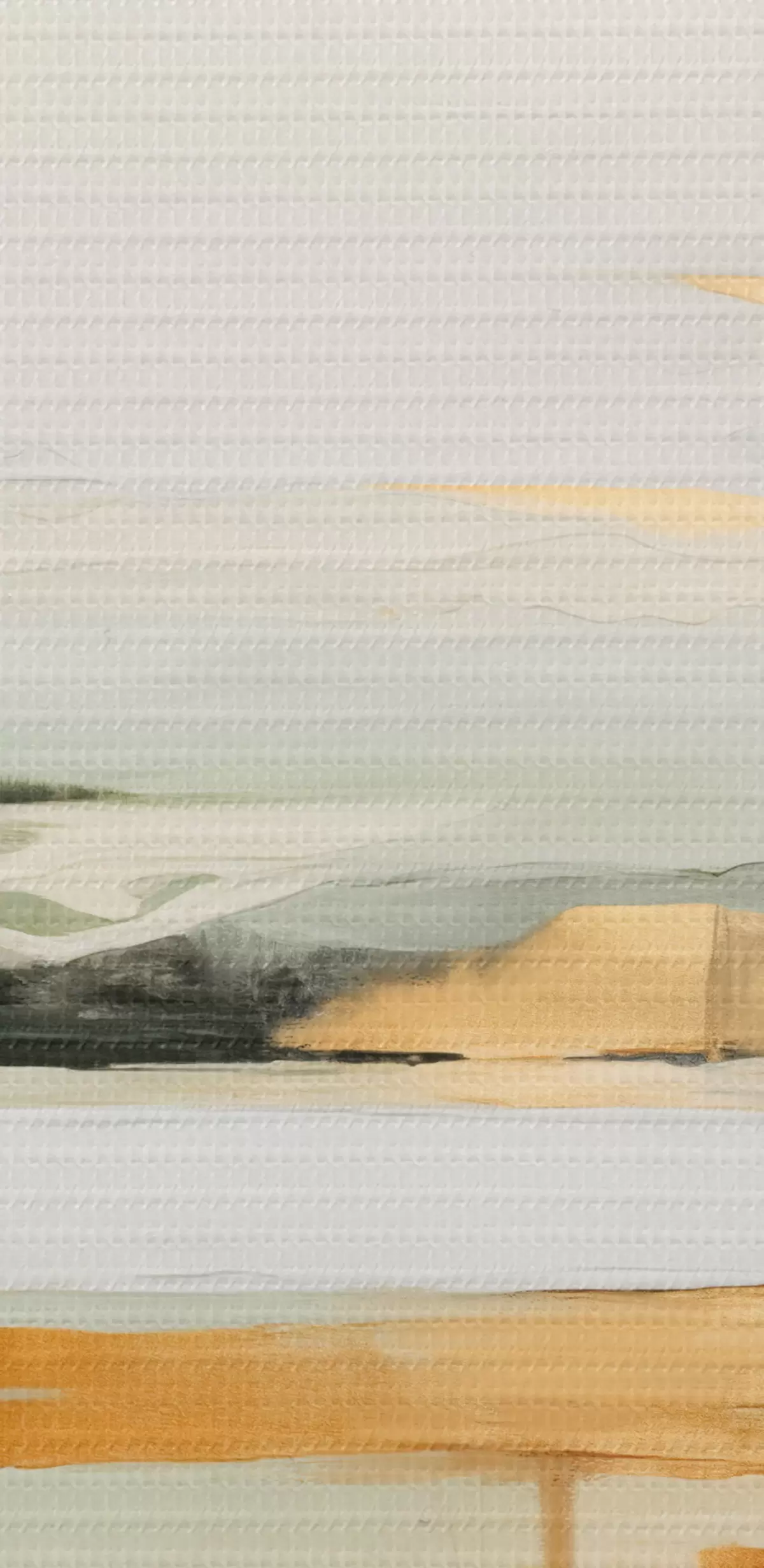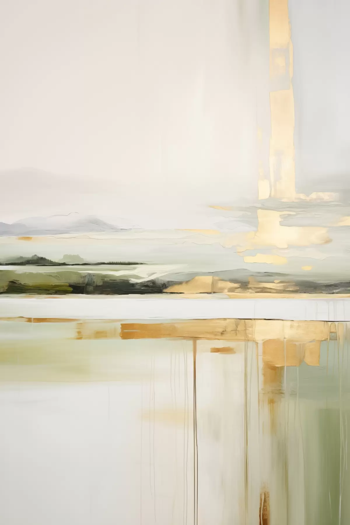Obraz Abstraktní krajina se žlutými akcenty, minimalistická kompozice země, vody a oblohy, s tlumenými barvami Č. s46268