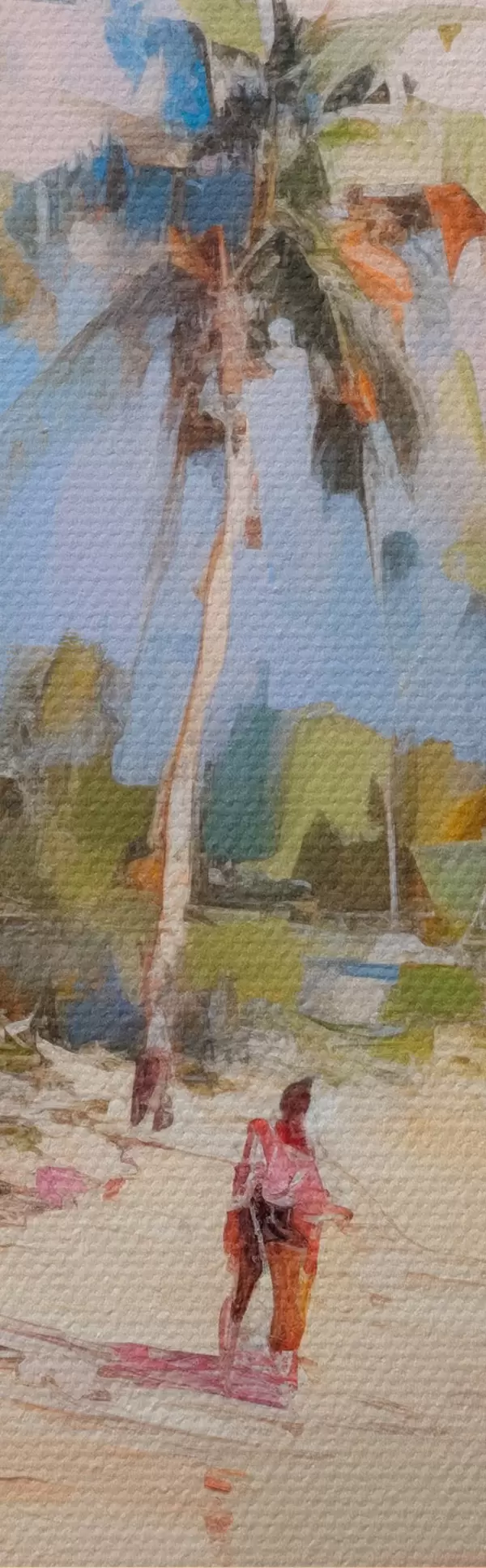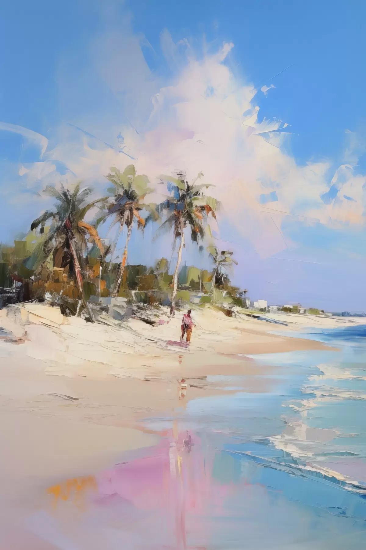Obraz Abstraktní krajina, pláž s palmami, jasný slunečný den s modrou oblohou a několika mraky Č. s46284