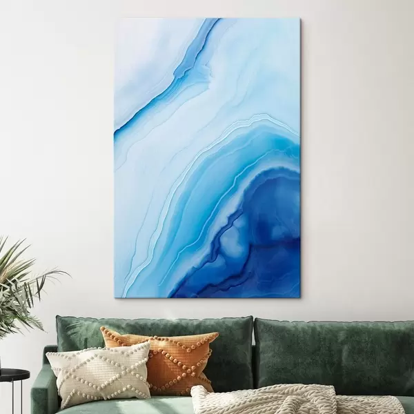 Obraz Abstraktní modrobílý achátový potisk, vířící linie a přechody, hladká textura, moderní umění, minimalistický Č. s46290