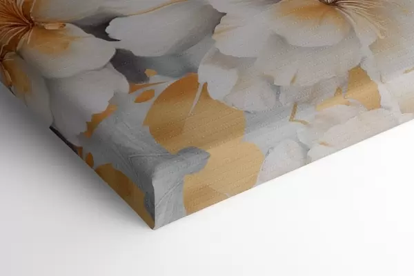 Obraz Bílé květy se žlutými detaily, okvětní lístky s jemnými stíny, světlé pozadí s jemným mramorovým efektem Č. s46292