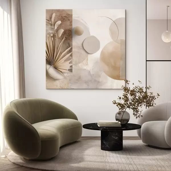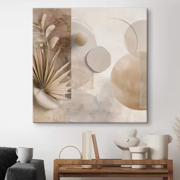 Obraz Sušené palmové listy a 3D kruhy v béžových tónech Č. s46310