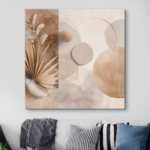 Obraz Sušené palmové listy a 3D kruhy v béžových tónech Č. s46310