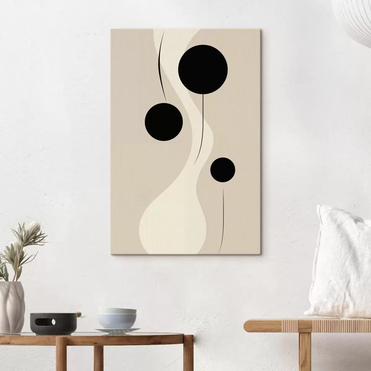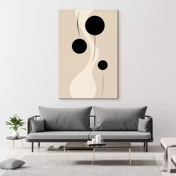 Obraz Minimální kruhy na béžovém pozadí s akcenty plynulých linií Č. s46496