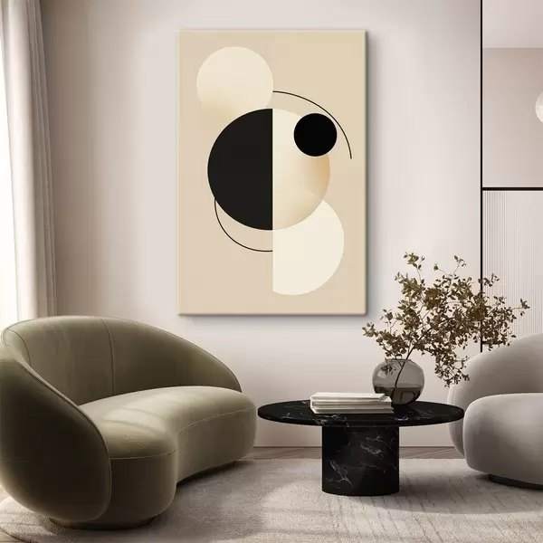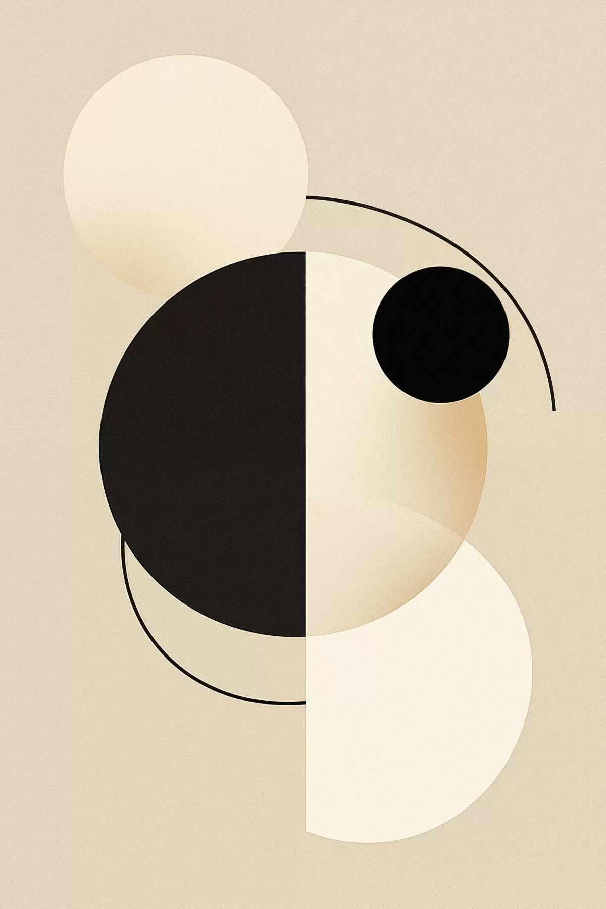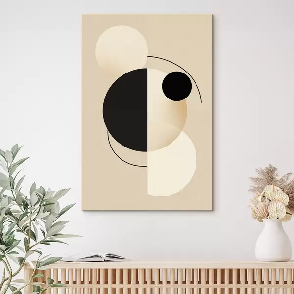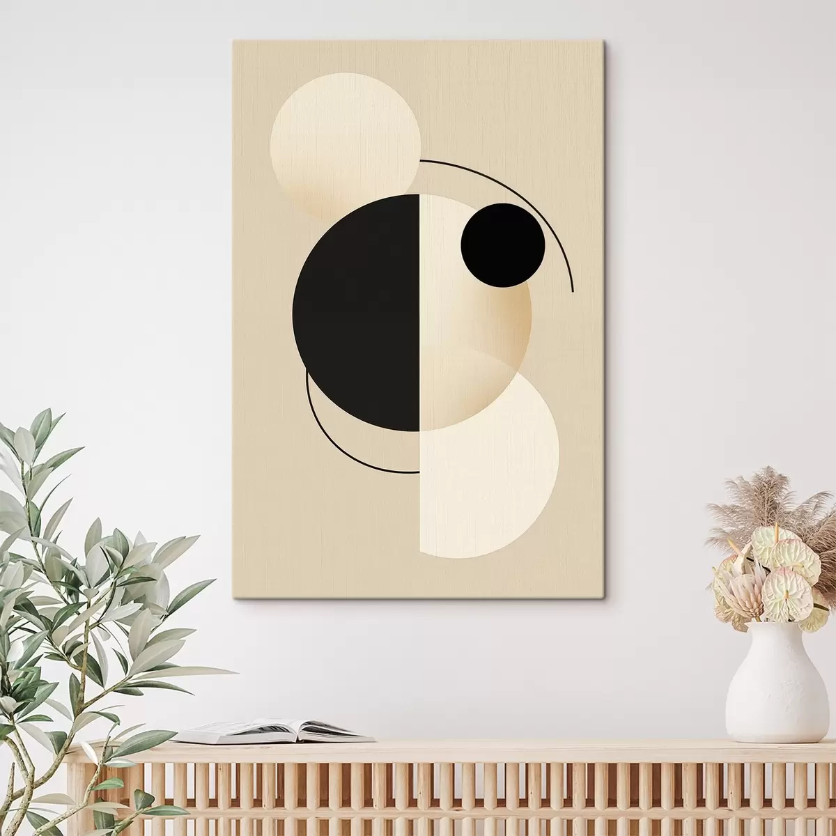 Obraz Grafické kruhy a oblouky v jemné béžové a černé barvě Č. s46497
